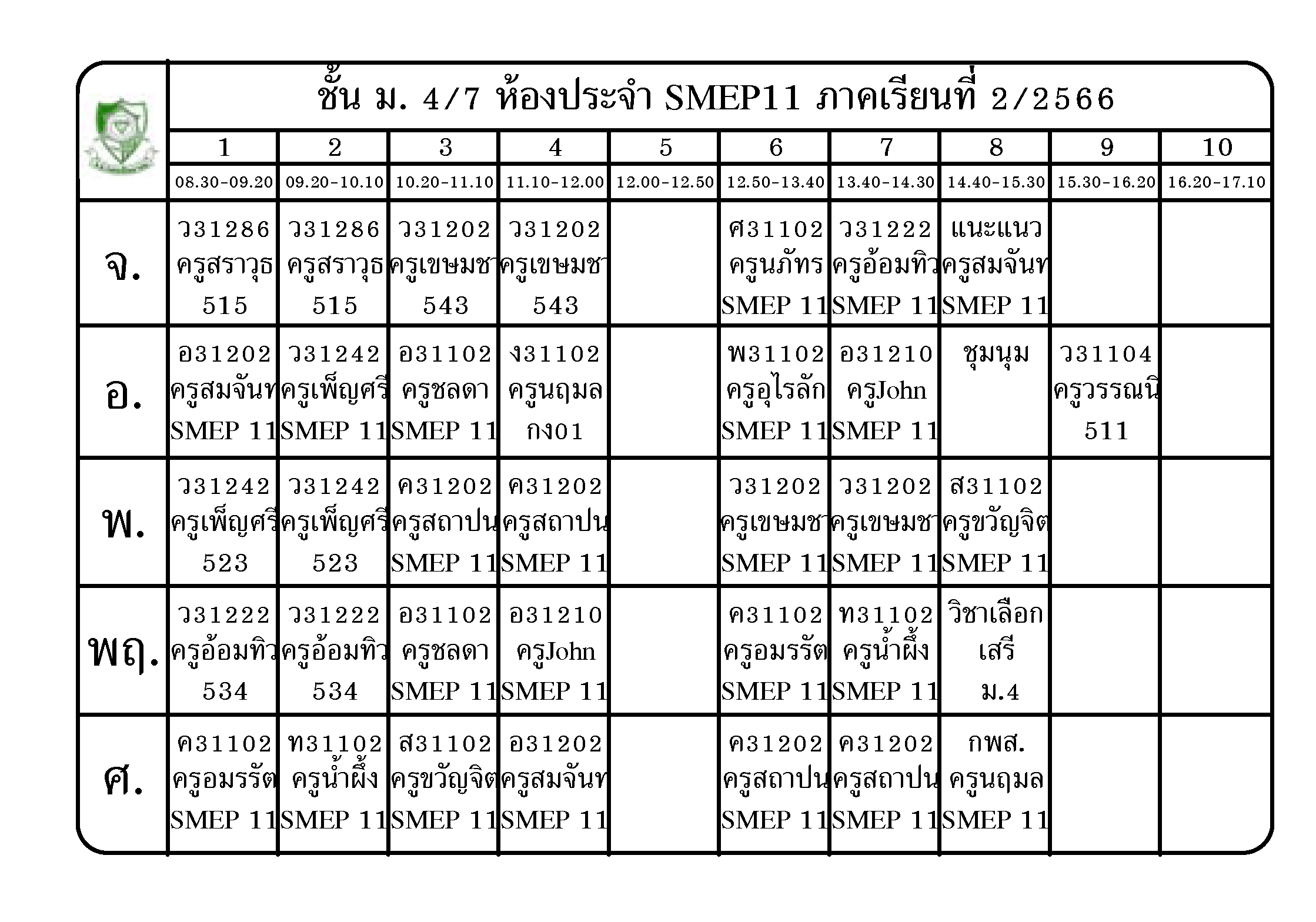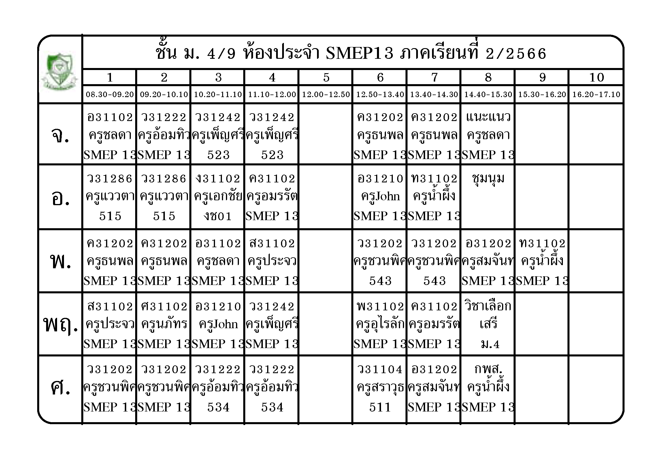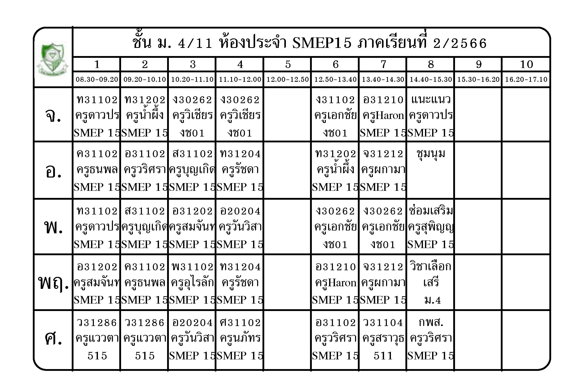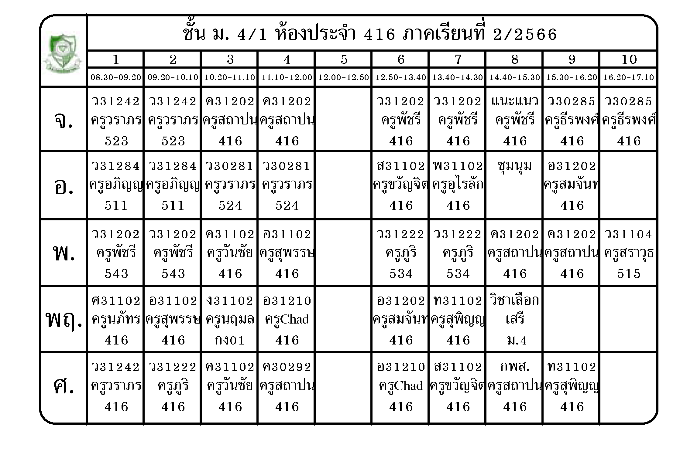 ตารางเรียน นักเรียนชั้น ม.4 ภาคเรียนที่ 2 ปีการศึกษา 2566