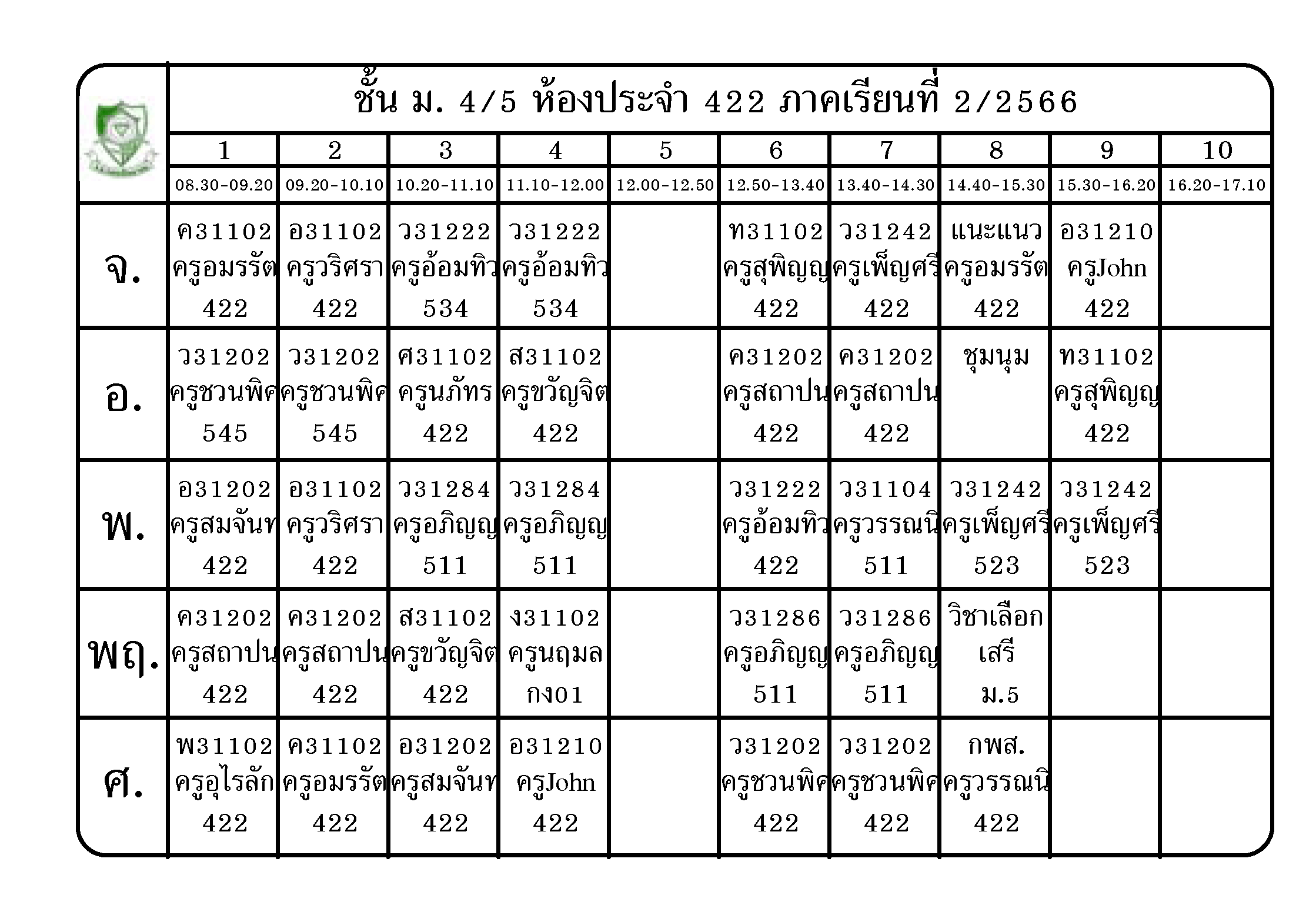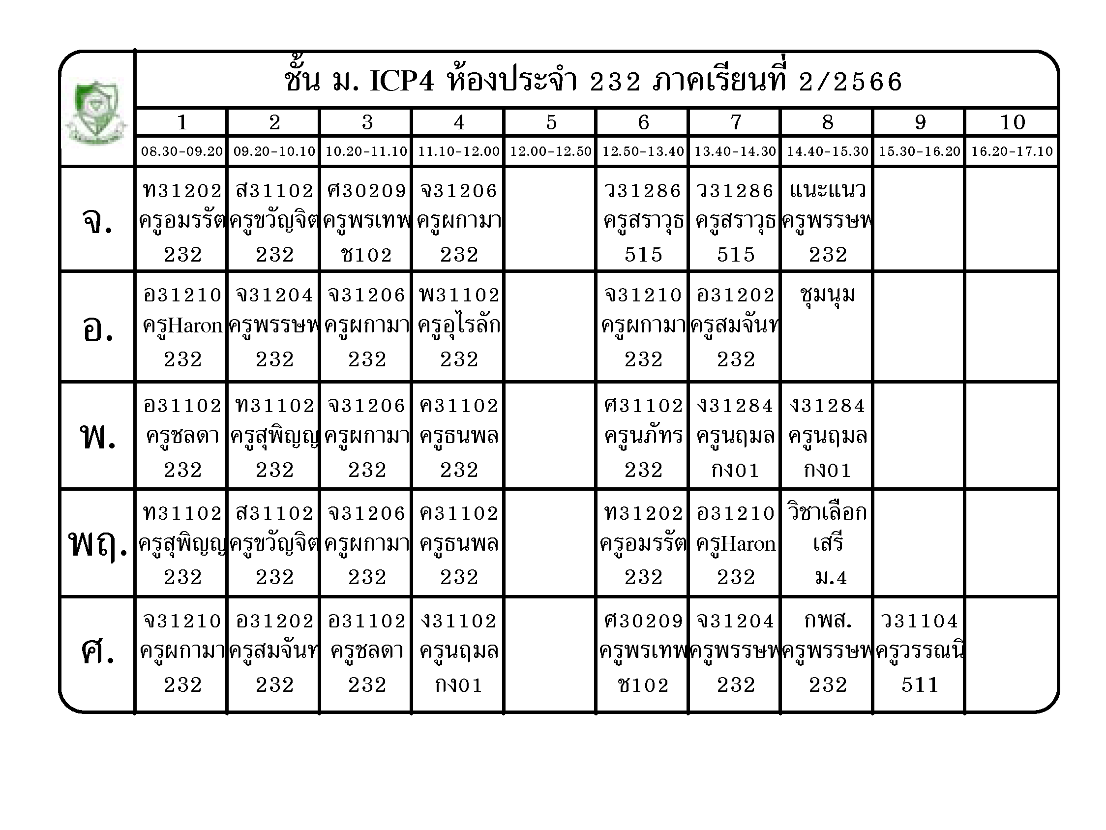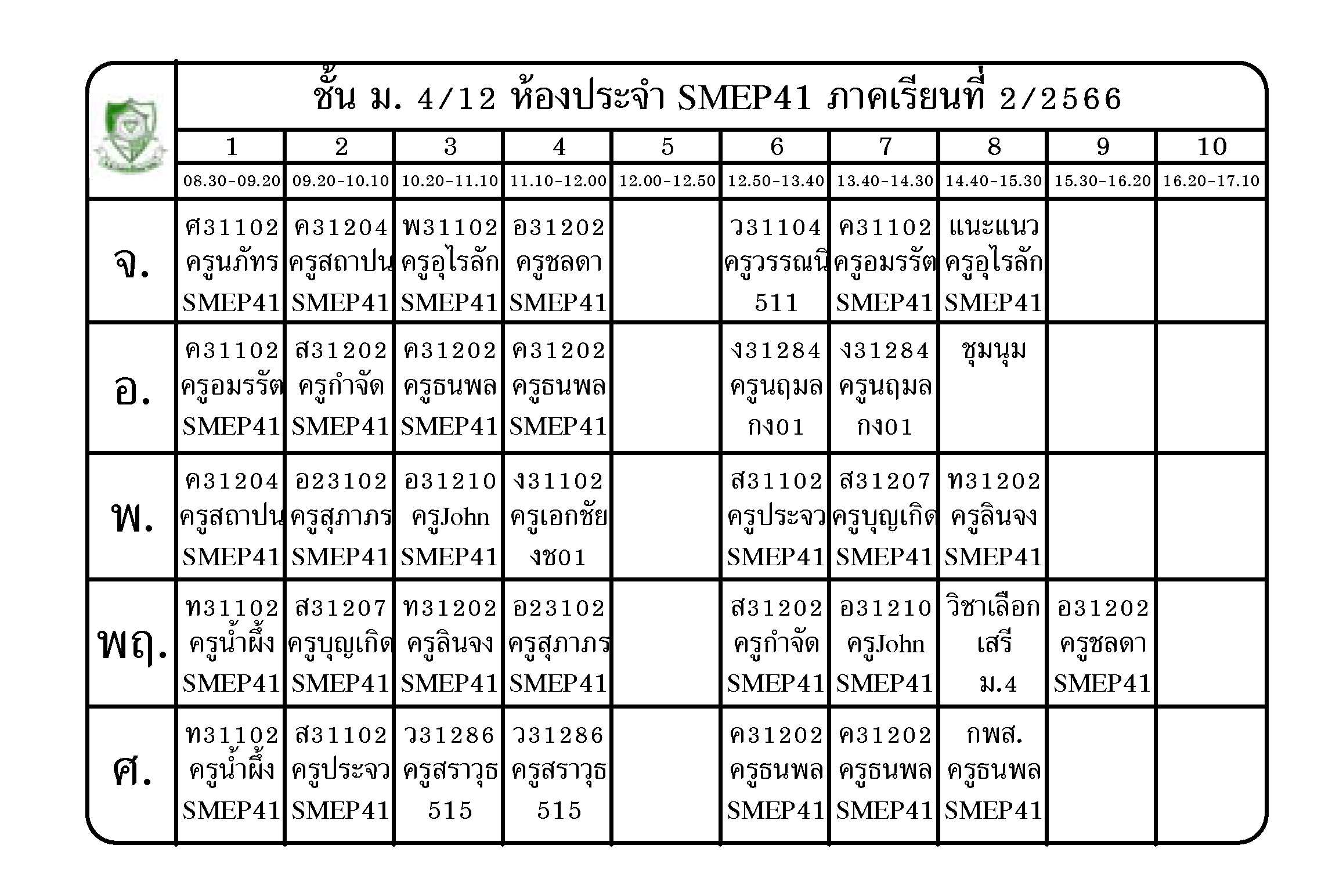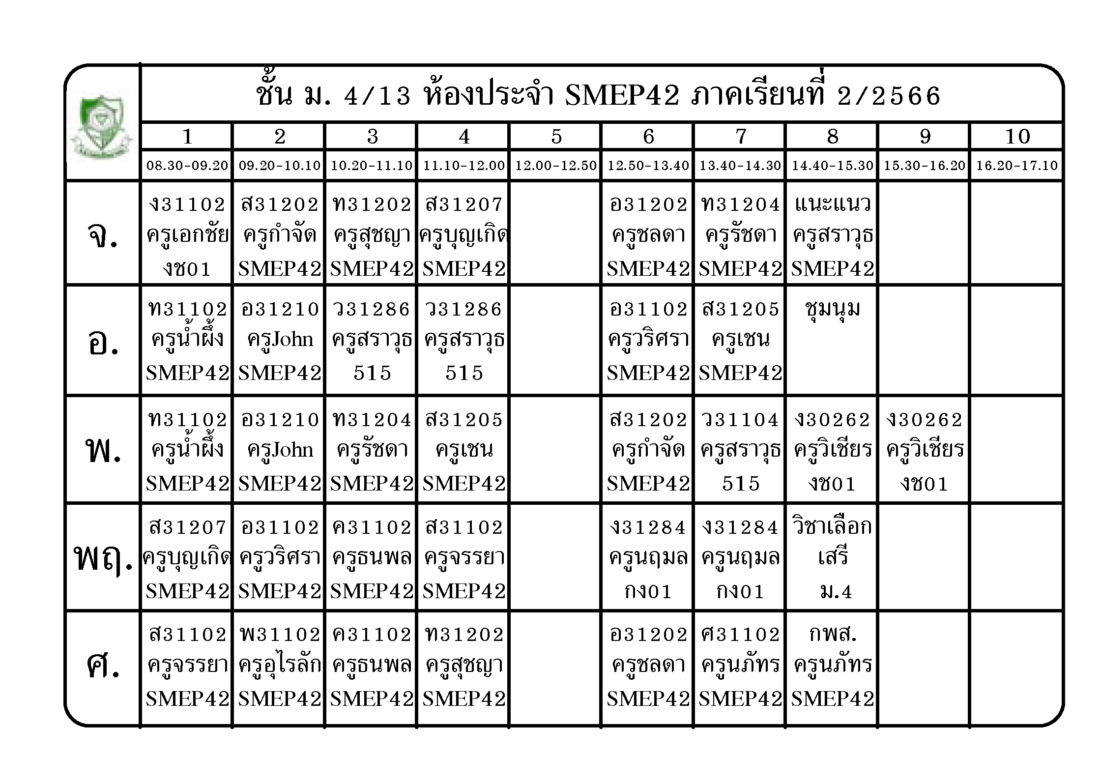 ตารางเรียน นักเรียนชั้น ม.4 ภาคเรียนที่ 2 ปีการศึกษา 2566