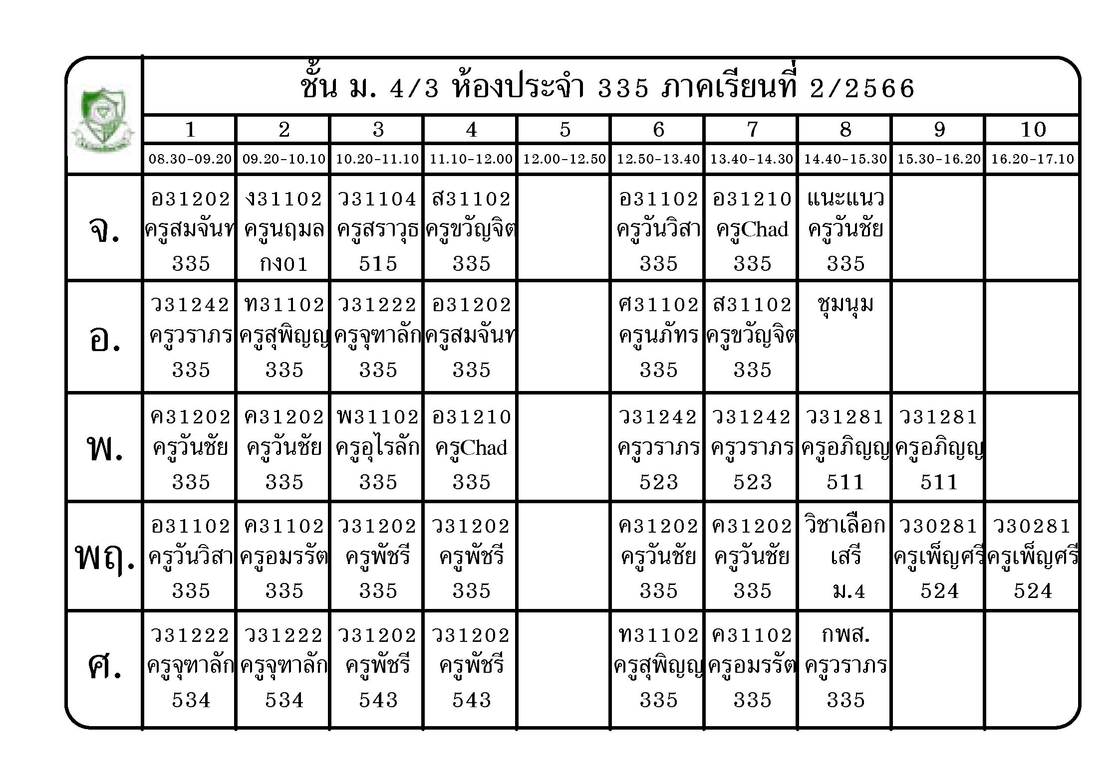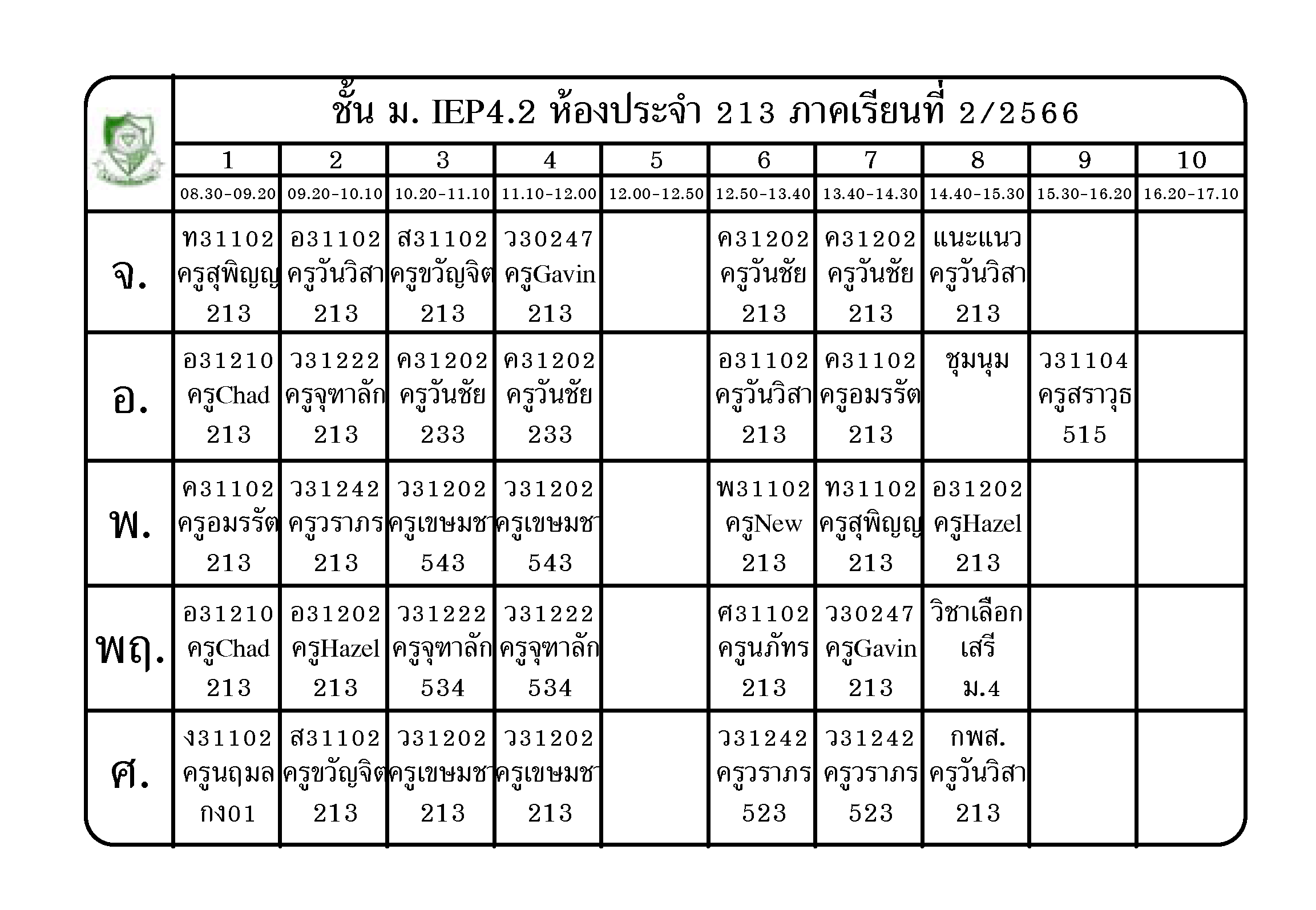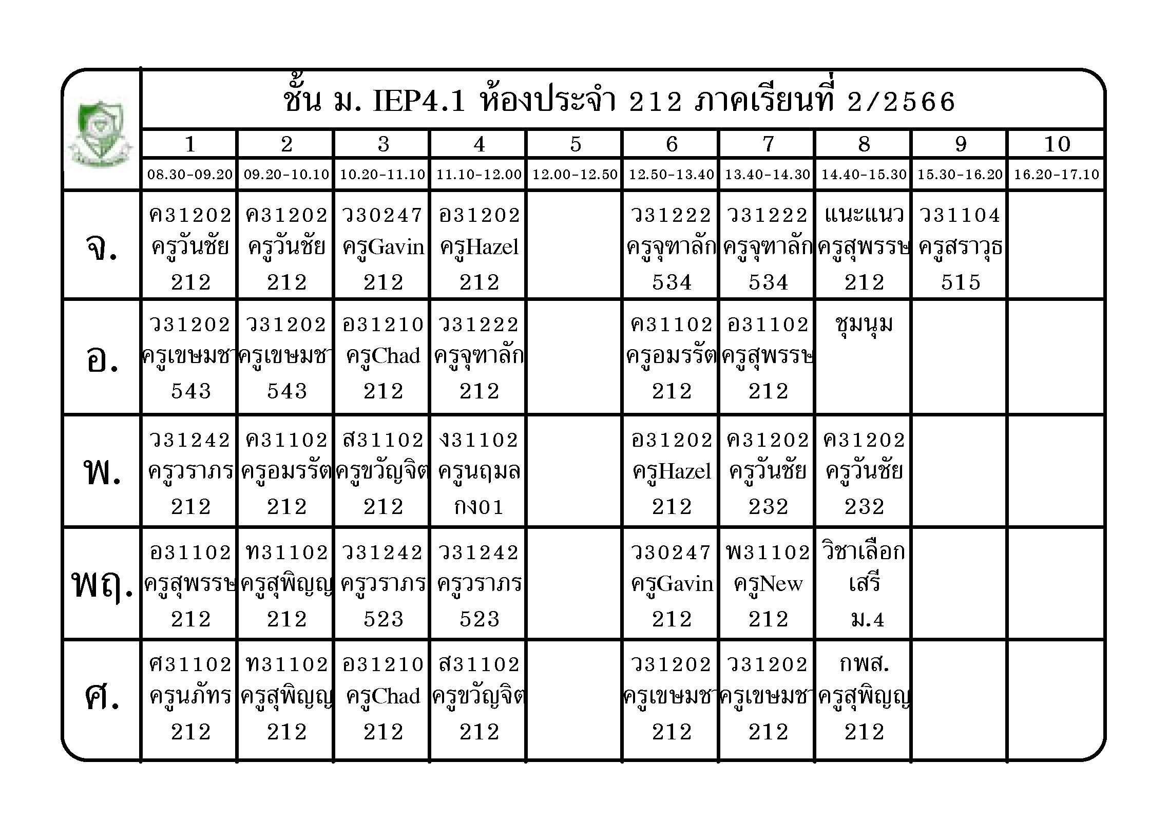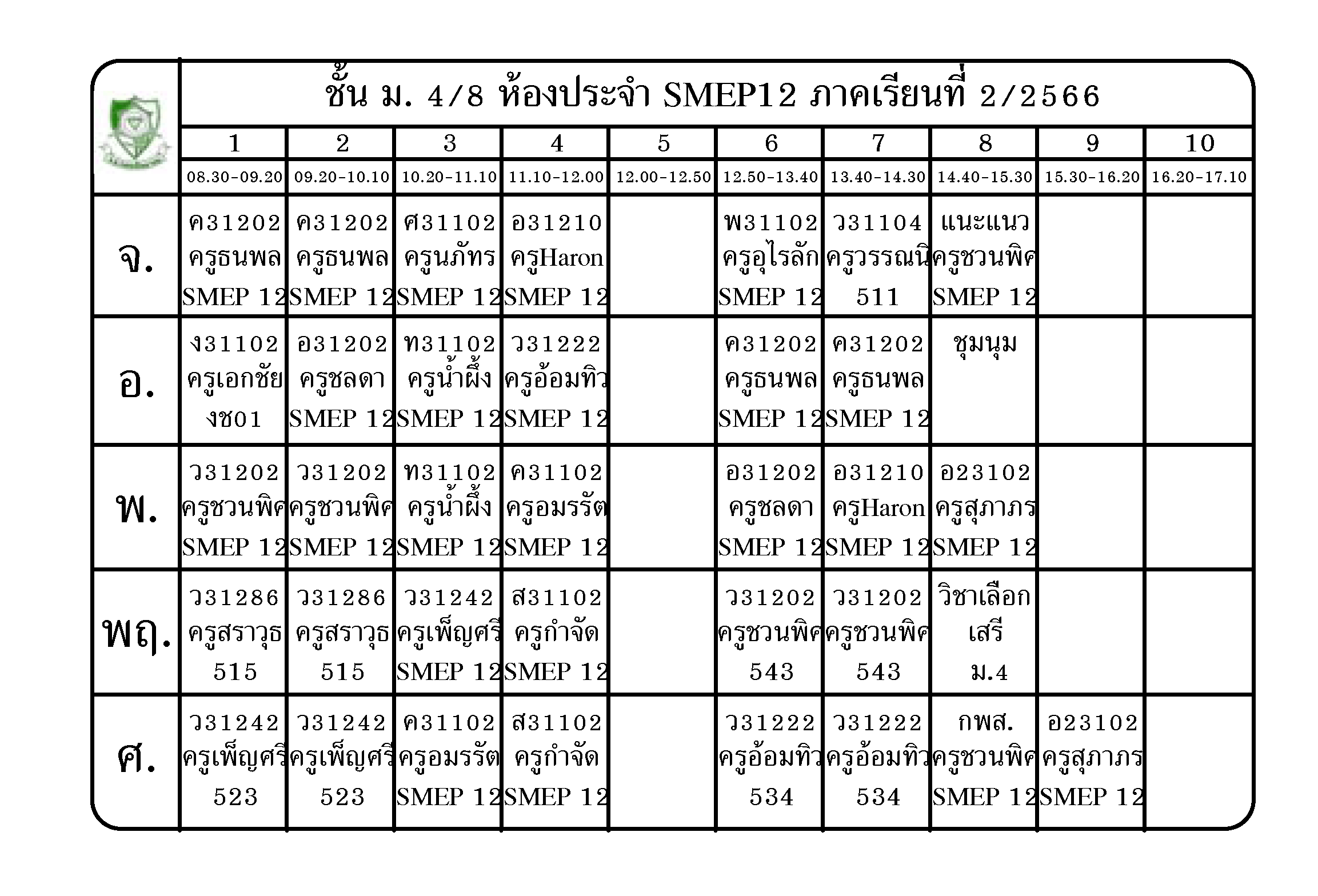 ตารางเรียน นักเรียนชั้น ม.4 ภาคเรียนที่ 2 ปีการศึกษา 2566