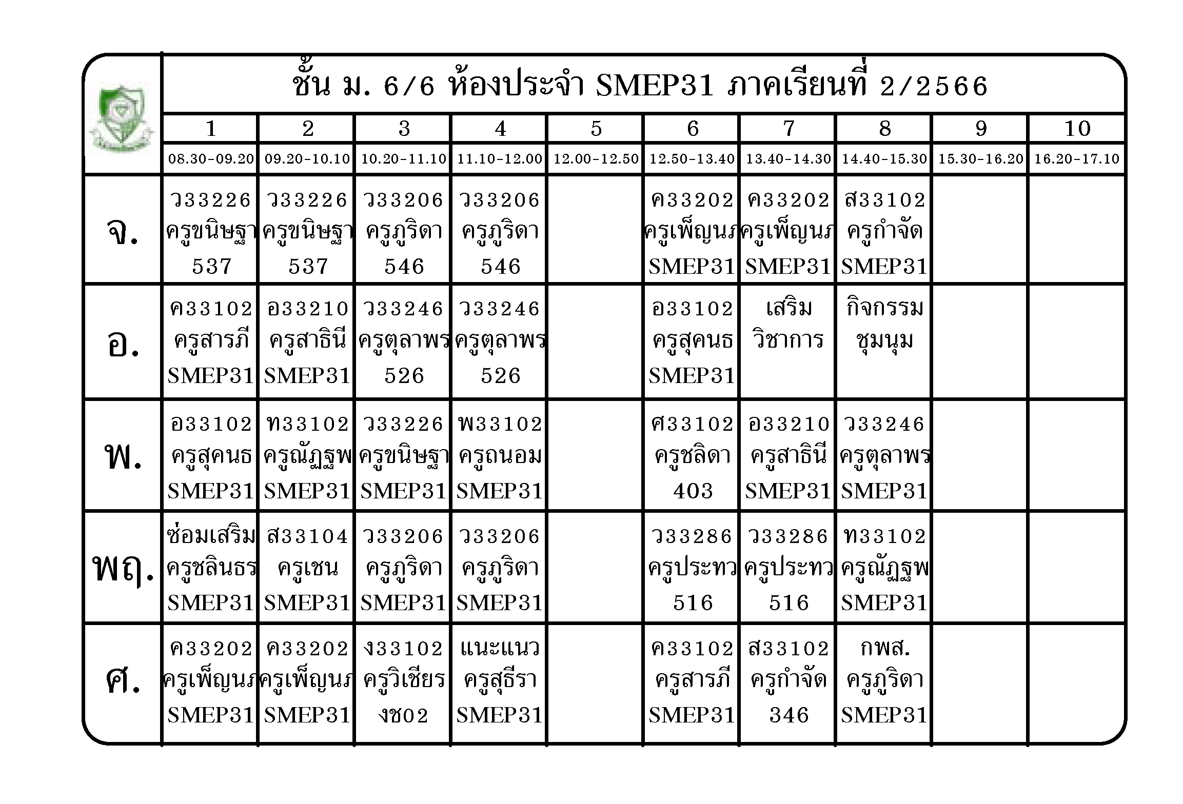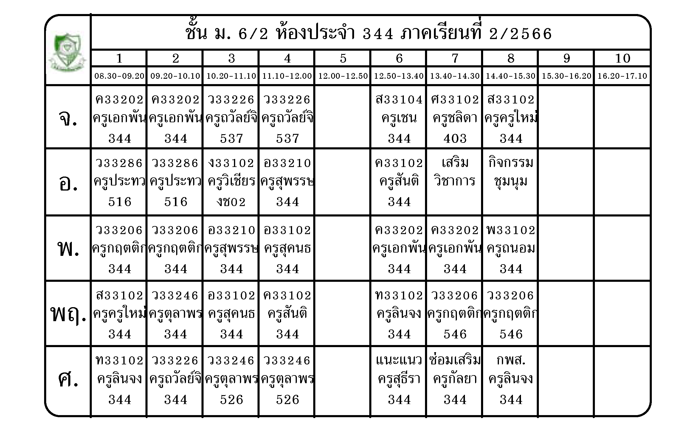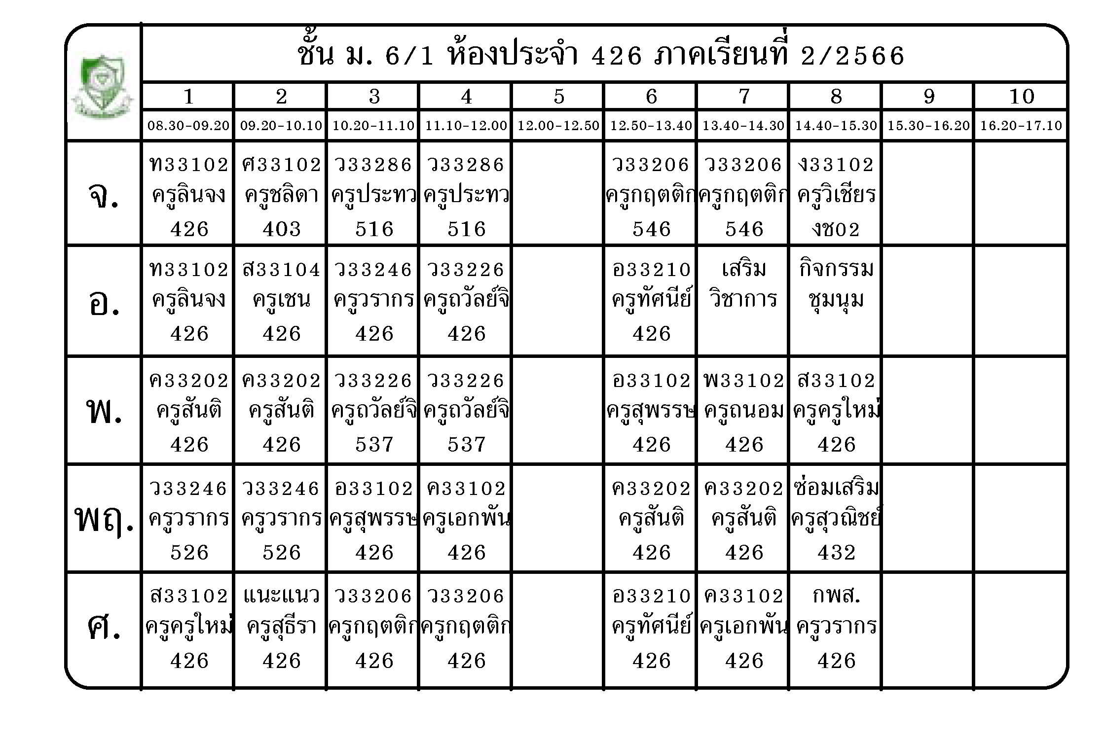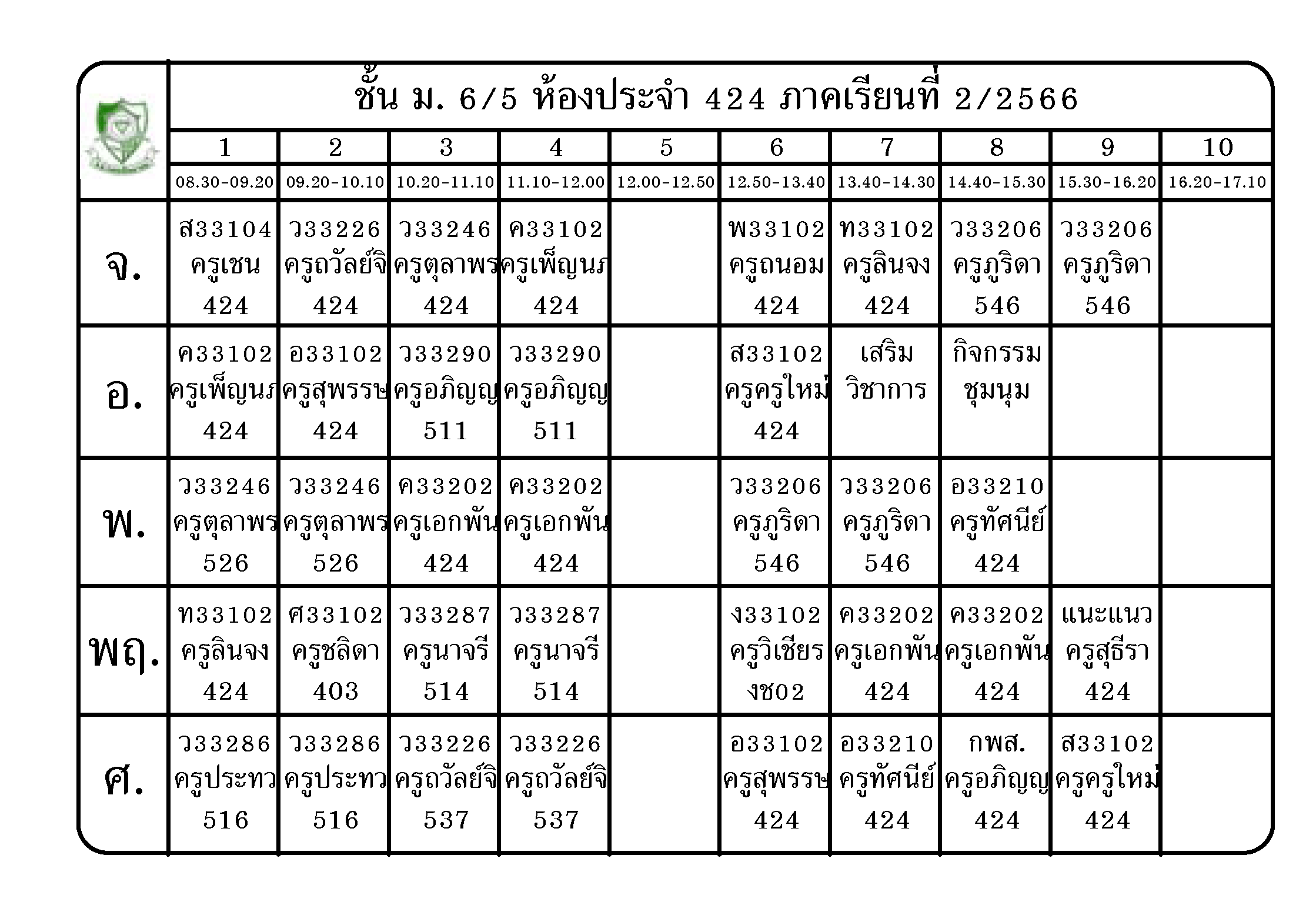ตารางเรียน นักเรียนชั้น ม.6 ภาคเรียนที่ 2 ปีการศึกษา 2566