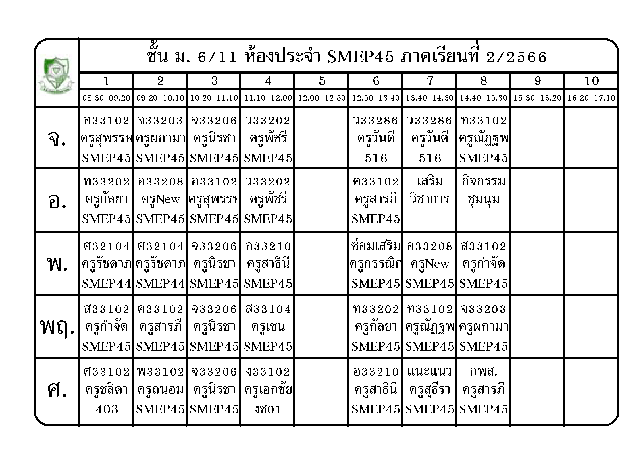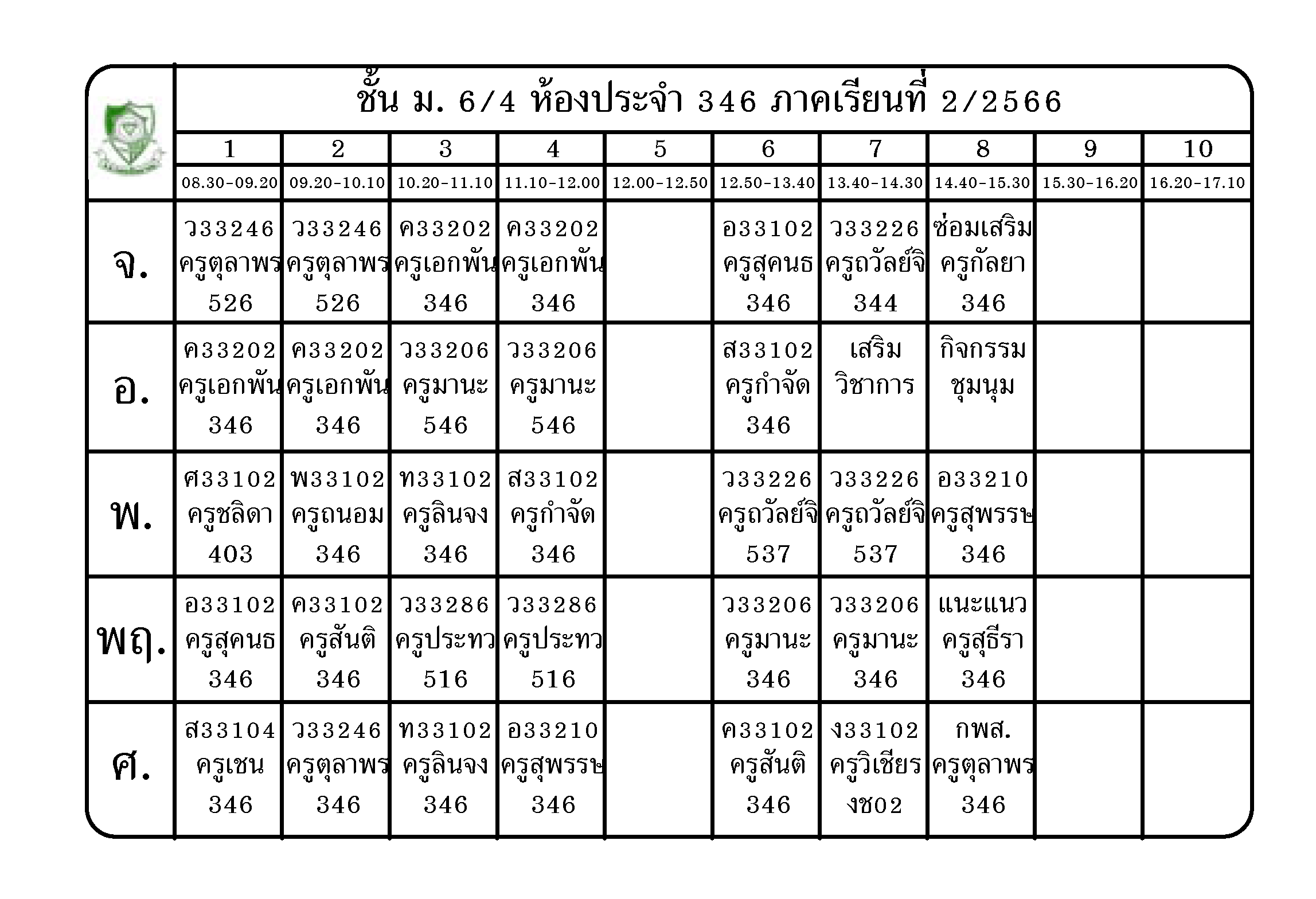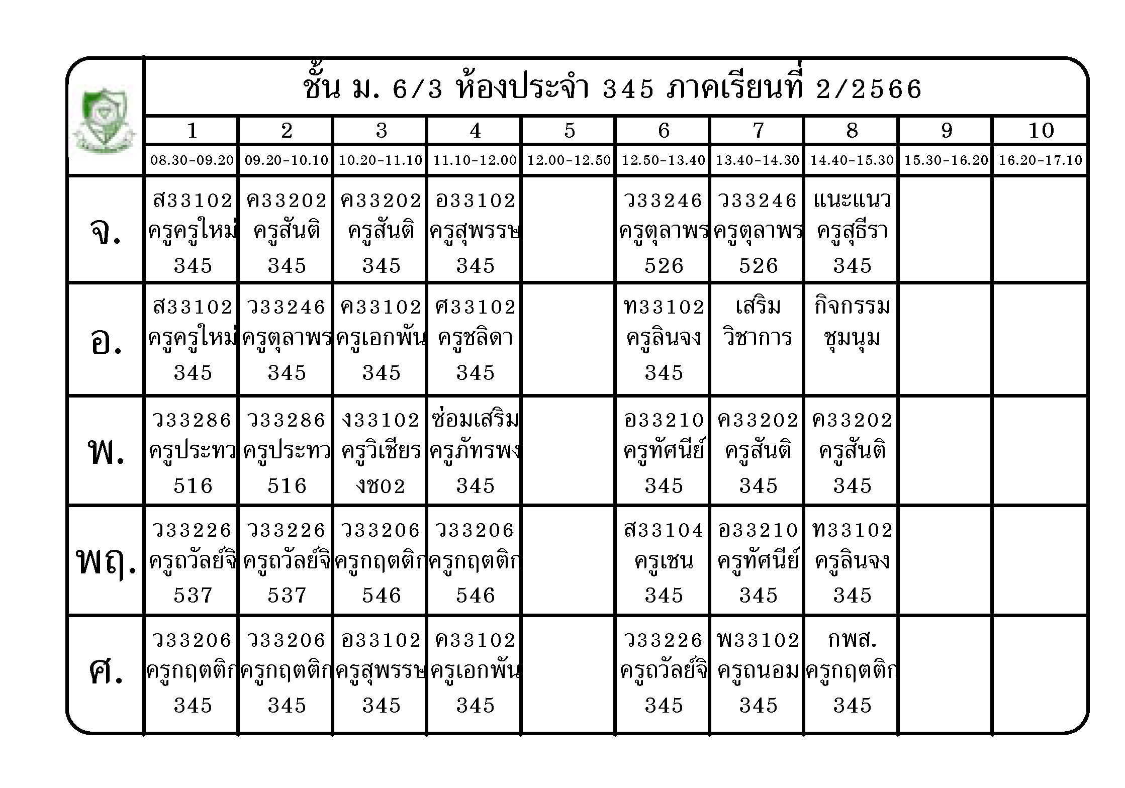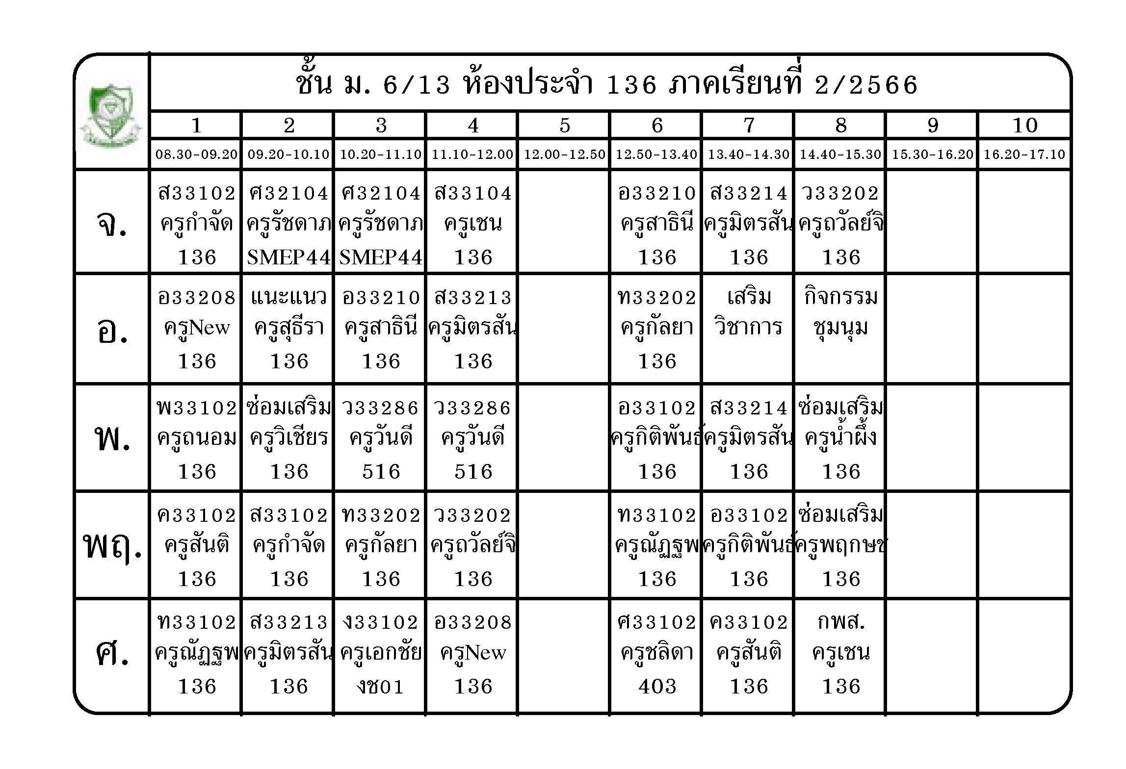 ตารางเรียน นักเรียนชั้น ม.6 ภาคเรียนที่ 2 ปีการศึกษา 2566