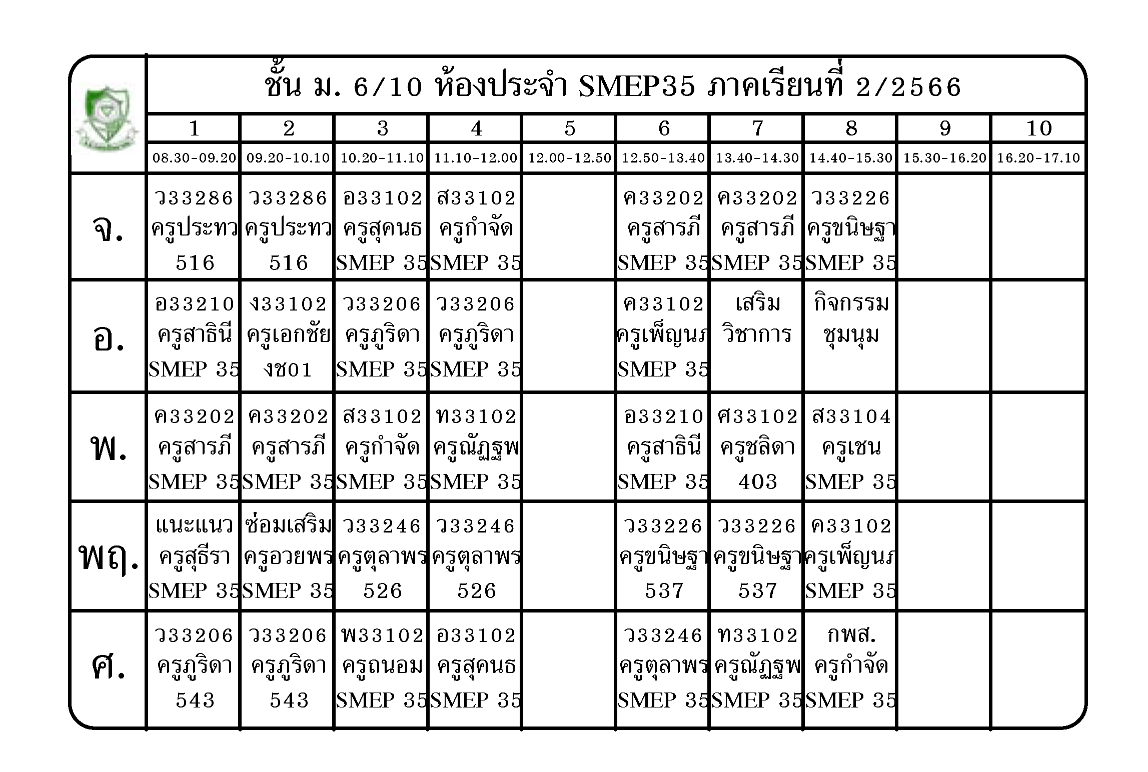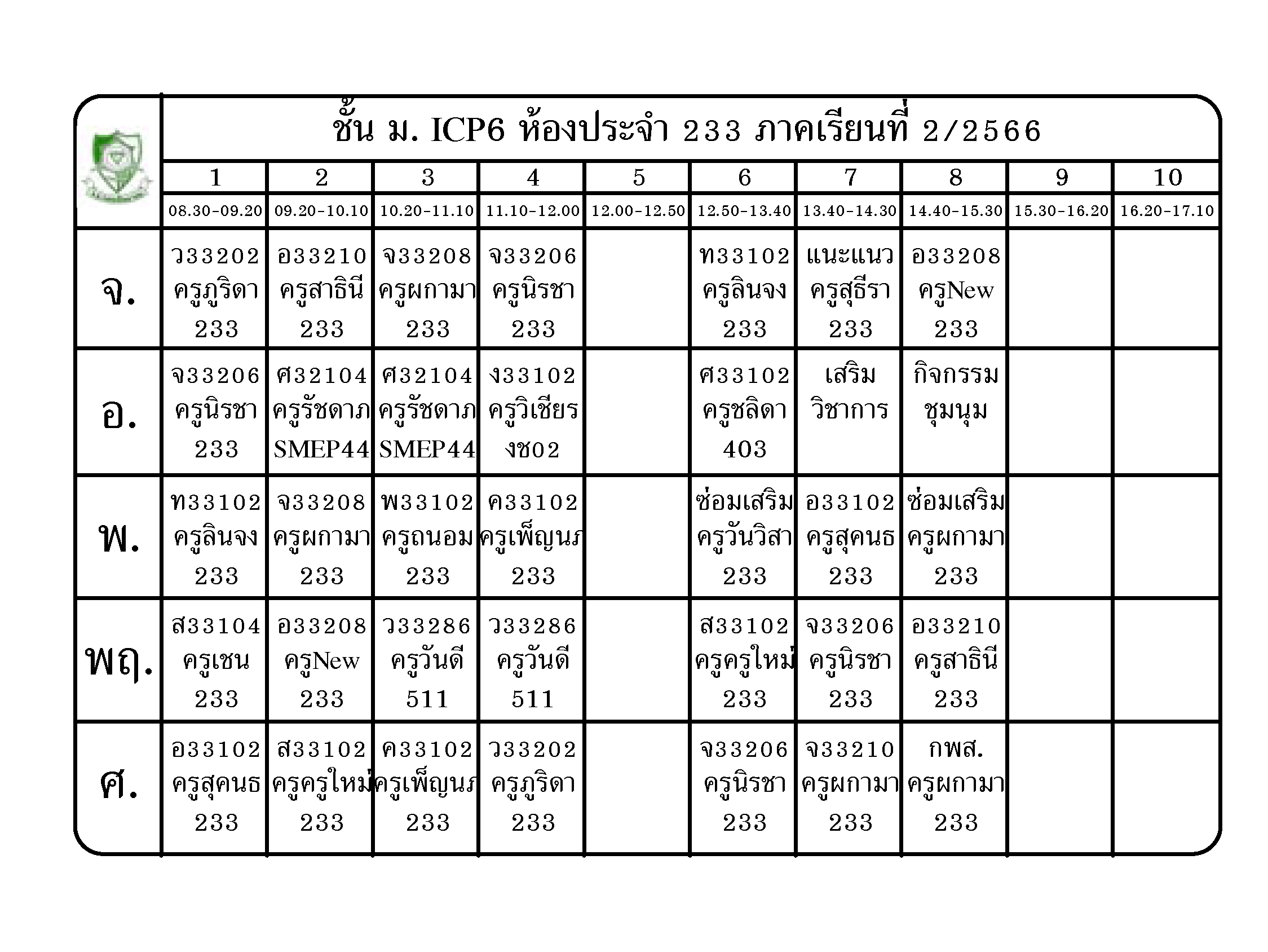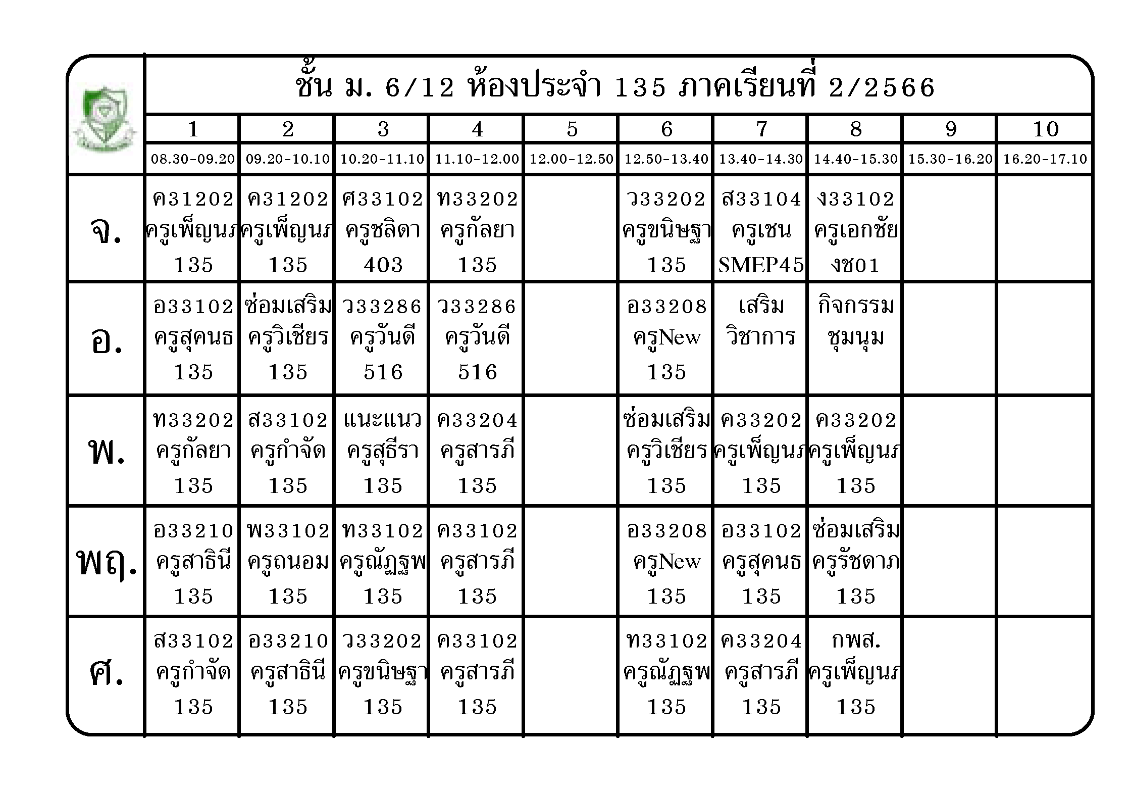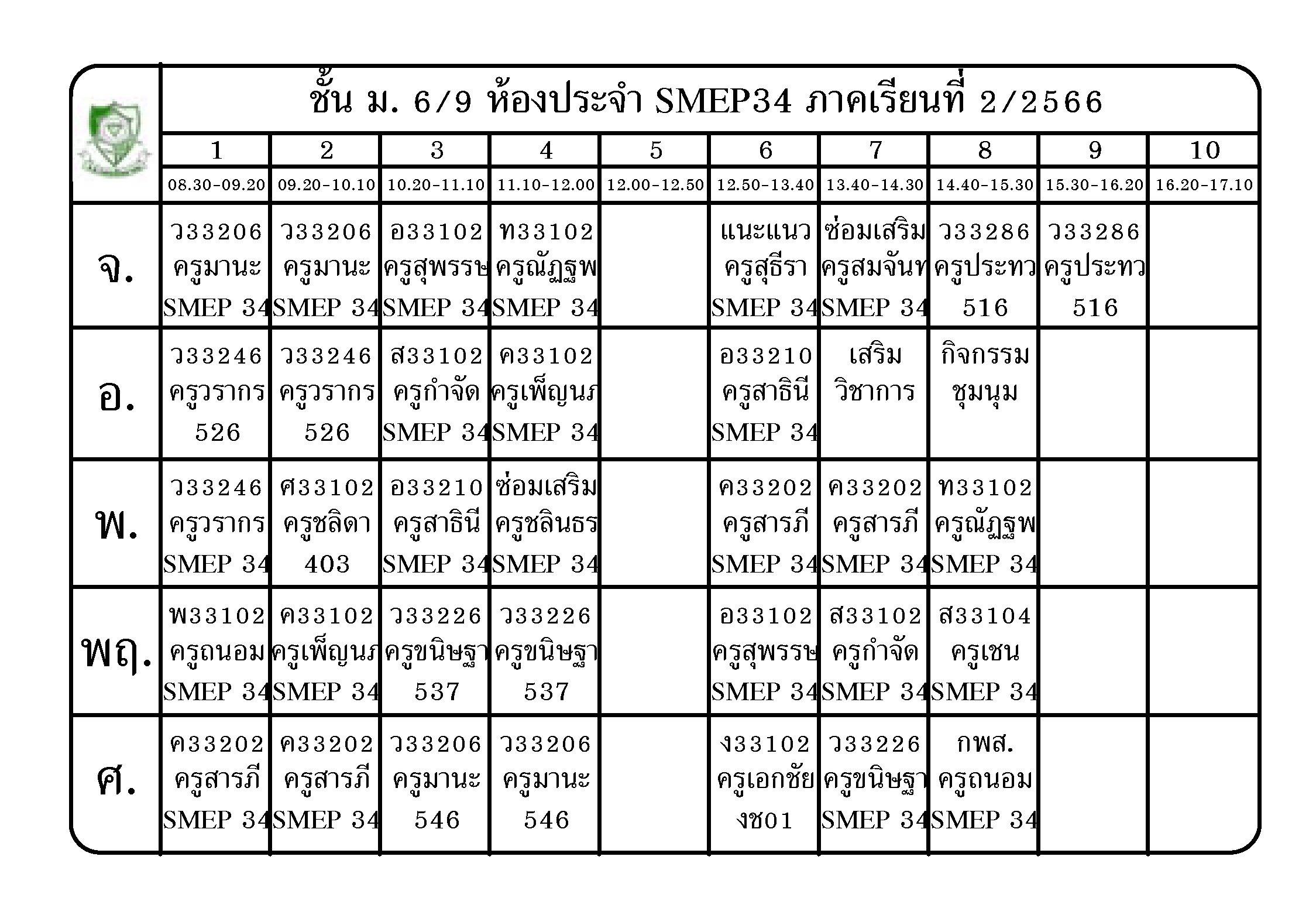 ตารางเรียน นักเรียนชั้น ม.6 ภาคเรียนที่ 2 ปีการศึกษา 2566