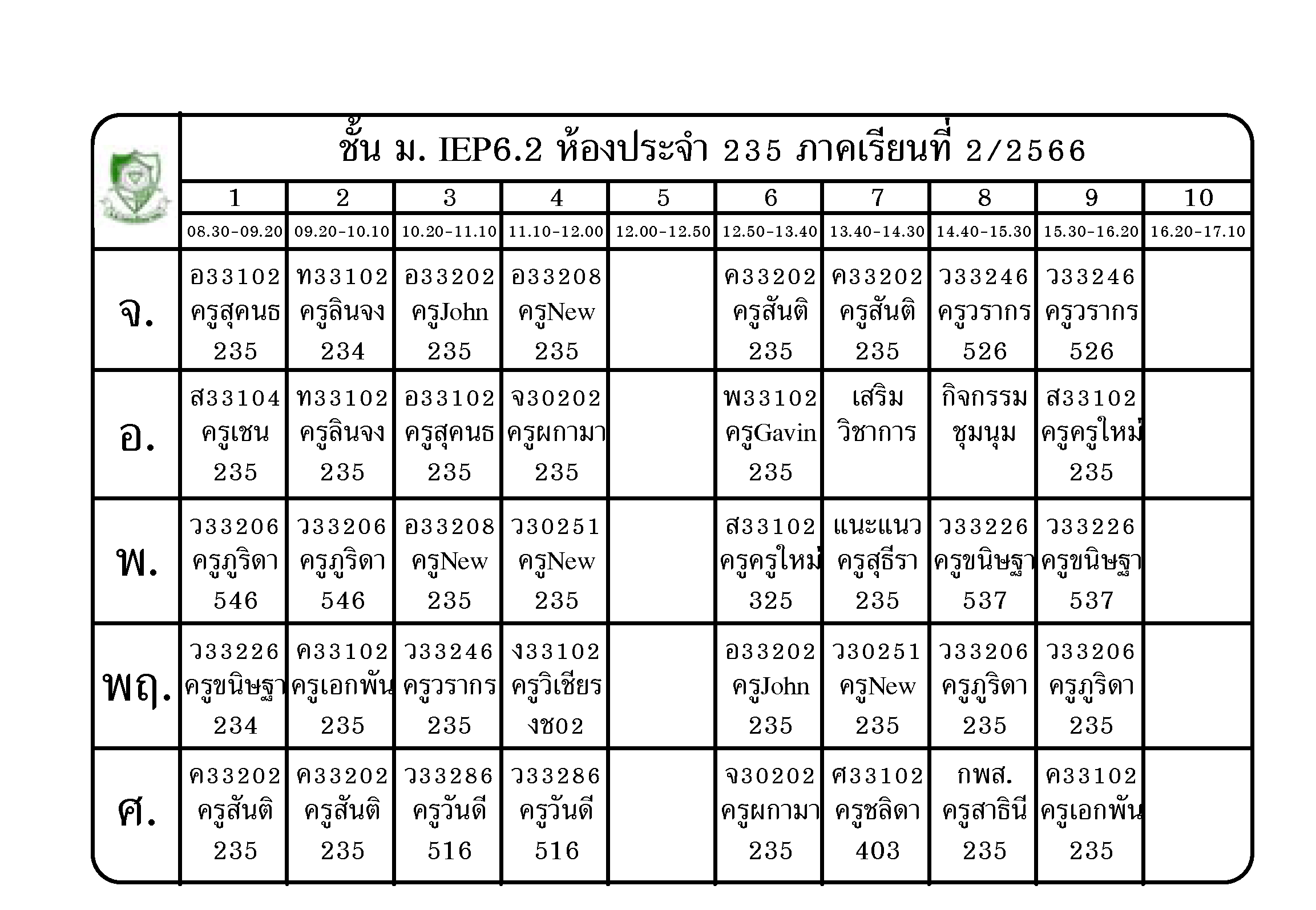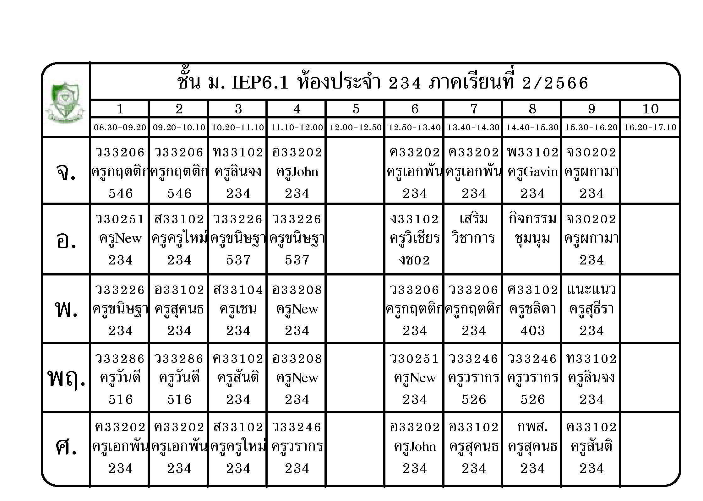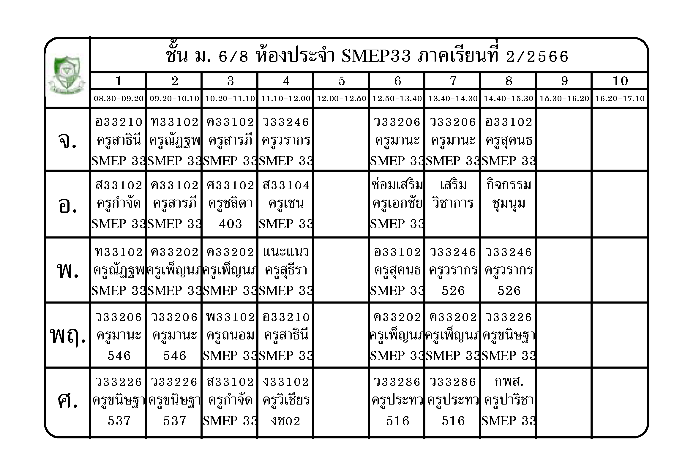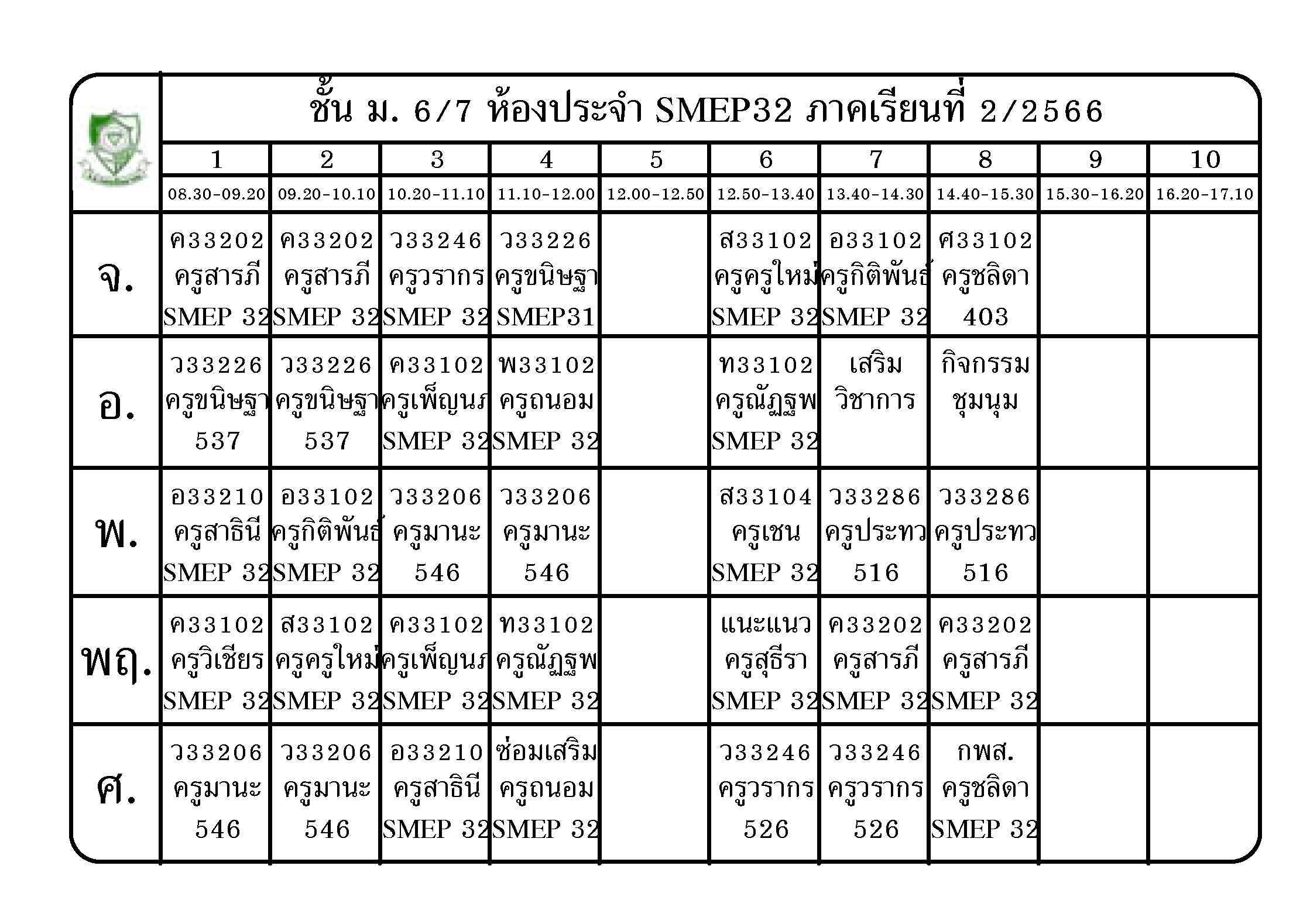 ตารางเรียน นักเรียนชั้น ม.6 ภาคเรียนที่ 2 ปีการศึกษา 2566