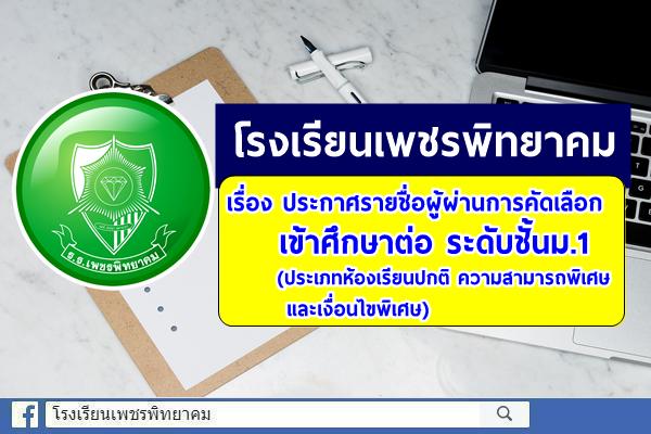 ประกาศโรงเรียนเพชรพิทยาคม เรื่อง ประกาศรายชื่อผู้ผ่านการคัดเลือกเข้าศึกษาต่อ ระดับชั้นมัธยมศึกษาปีที่ 1 ปีการศึกษา 2564 (ประเภทห้องเรียนปกติ ความสามารถพิเศษ และเงื่อนไขพิเศษ)