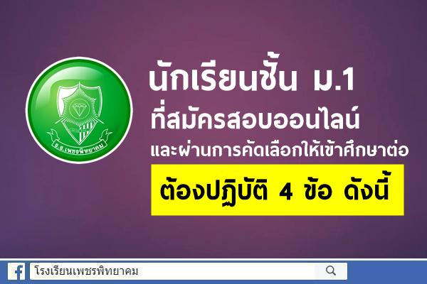 นักเรียนชั้นมัธยมศึกษาปีที่ 1 ที่สมัครสอบออนไลน์ และผ่านการคัดเลือกให้เข้าศึกษาต่อ ต้องปฏิบัติ ดังนี้