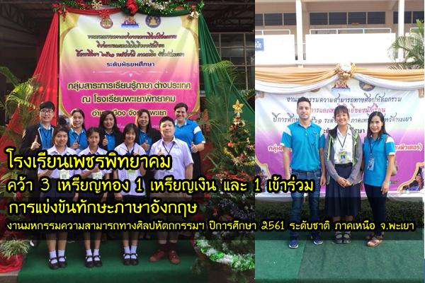 โรงเรียนเพชรพิทยาคม คว้า 3 เหรียญทอง 1 เหรียญเงิน การแข่งขันทักษะภาษาอังกฤษ งานมหกรรมความสามารถทางศิลปหัตถกรรมฯ ปีการศึกษา 2561 ระดับชาติ ภาคเหนือ จ.พะเยา