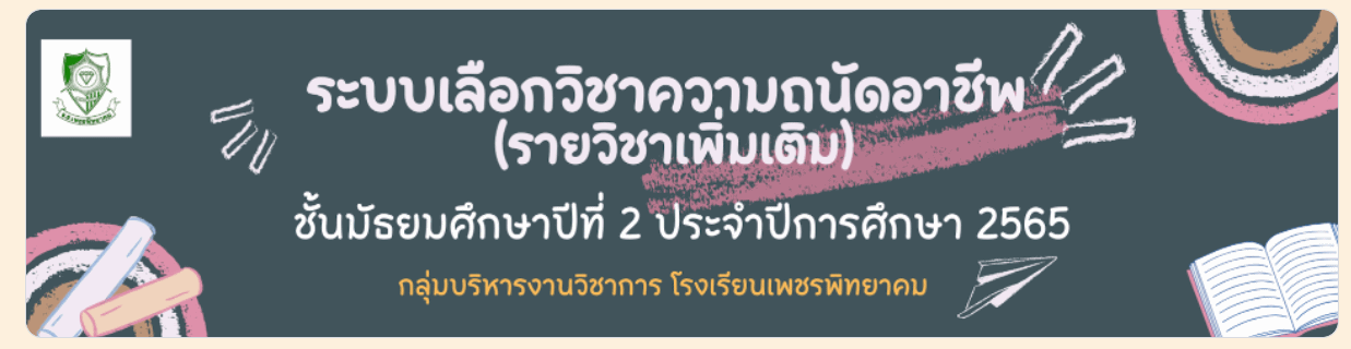 ระบบเลือกวิชาความถนัดอาชีพ (รายวิชาเพิ่มเติม) นักเรียนชั้นมัธยมศึกษาปีที่ 2 ภาคเรียนที่ 1 ปีการศึกษา 2565