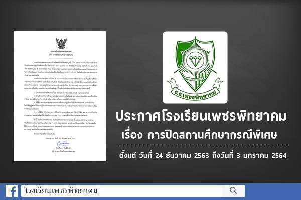 ประกาศโรงเรียนเพชรพิทยาคม เรื่อง การปิดสถานศึกษากรณีพิเศษ