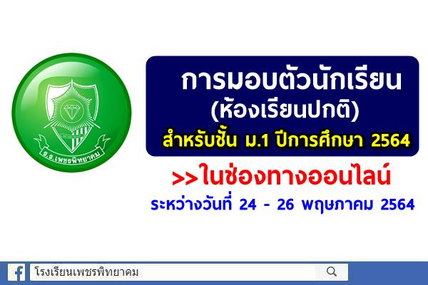 การมอบตัวนักเรียน (ห้องเรียนปกติ) สำหรับชั้นมัธยมศึกษาปีที่ 1 ปีการศึกษา 2564 ในช่องทางออนไลน์ ระหว่างวันที่ 24 - 26 พฤษภาคม 2564