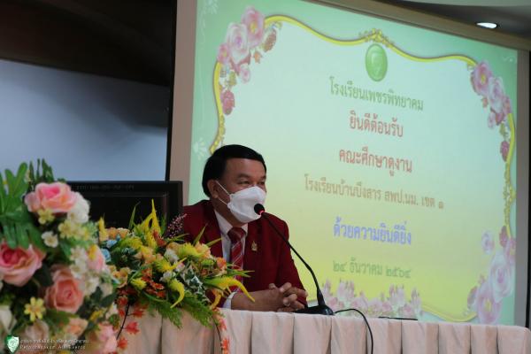นายวิเศษ ปิ่นพิทักษ์ ผู้อำนวยการโรงเรียน พร้อมด้วย รองผู้อำนวยการและตัวแทนครูโรงเรียนเพชรพิทยาคมร่วมต้อนรับคณะศึกษาดูงานโรงเรียนบ้านบึงสาร จากจังหวัดนครราชสีมา โดยมีวัตถุประสงค์เพื่อศึกษาดูงานและแลกเปลี่ยนเรียนรู้ในการบริหารจัดการการศึกษาของโรงเรียนเพชรพิทยาคม ทั้งนี้ทางโรงเรียนได้ปฏิบัติตามมาตรการป้องกันการแพร่ระบาดของโรคติดเชื้อไวรัสโคโรนา 2019 (COVID-19) อย่างเคร่งครัด เมื่อวันที่ 24 ธันวาคม 2564 ณ ห้องโสตทัศนศึกษา 1 โรงเรียนเพชรพิทยาคม