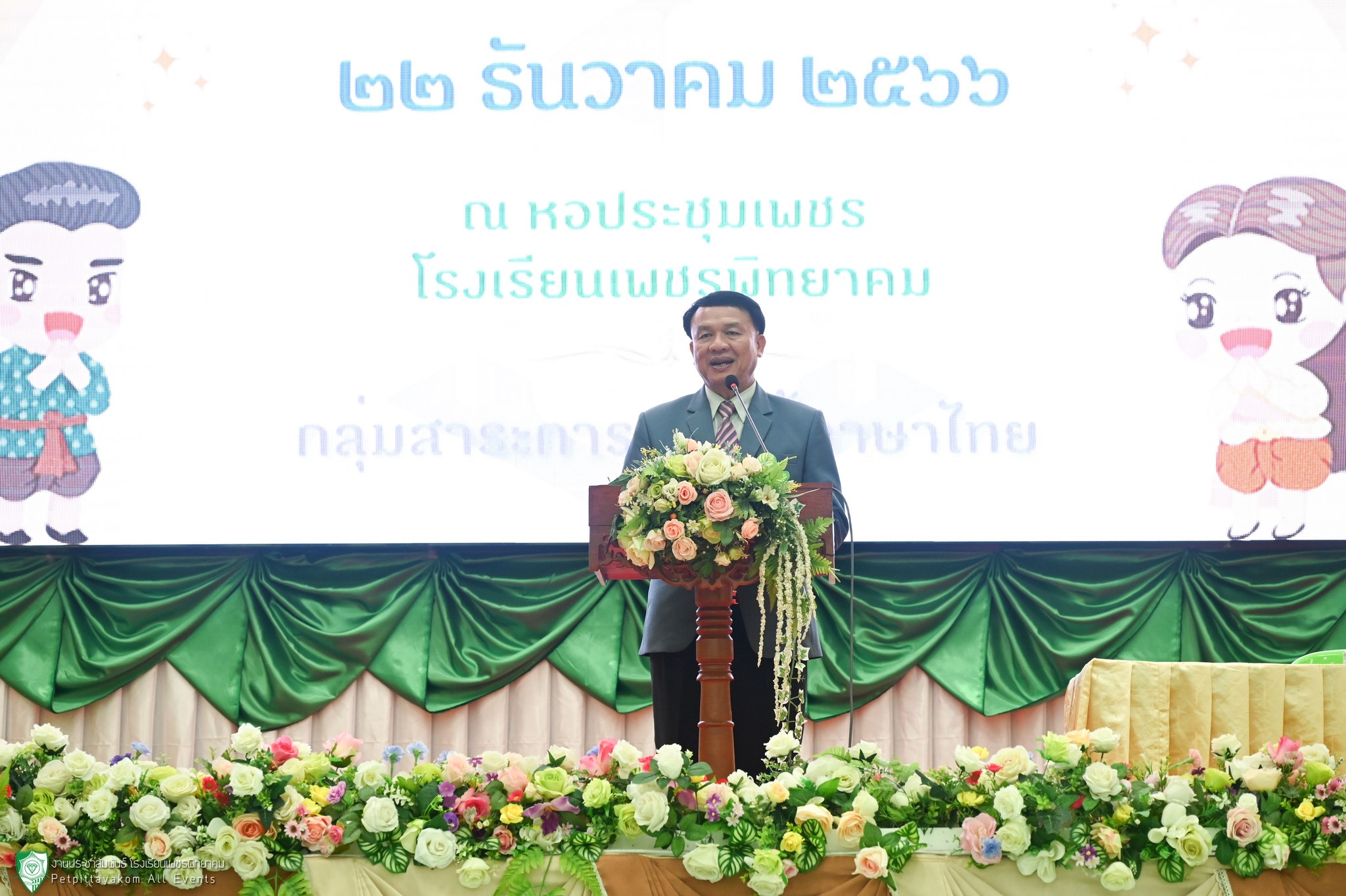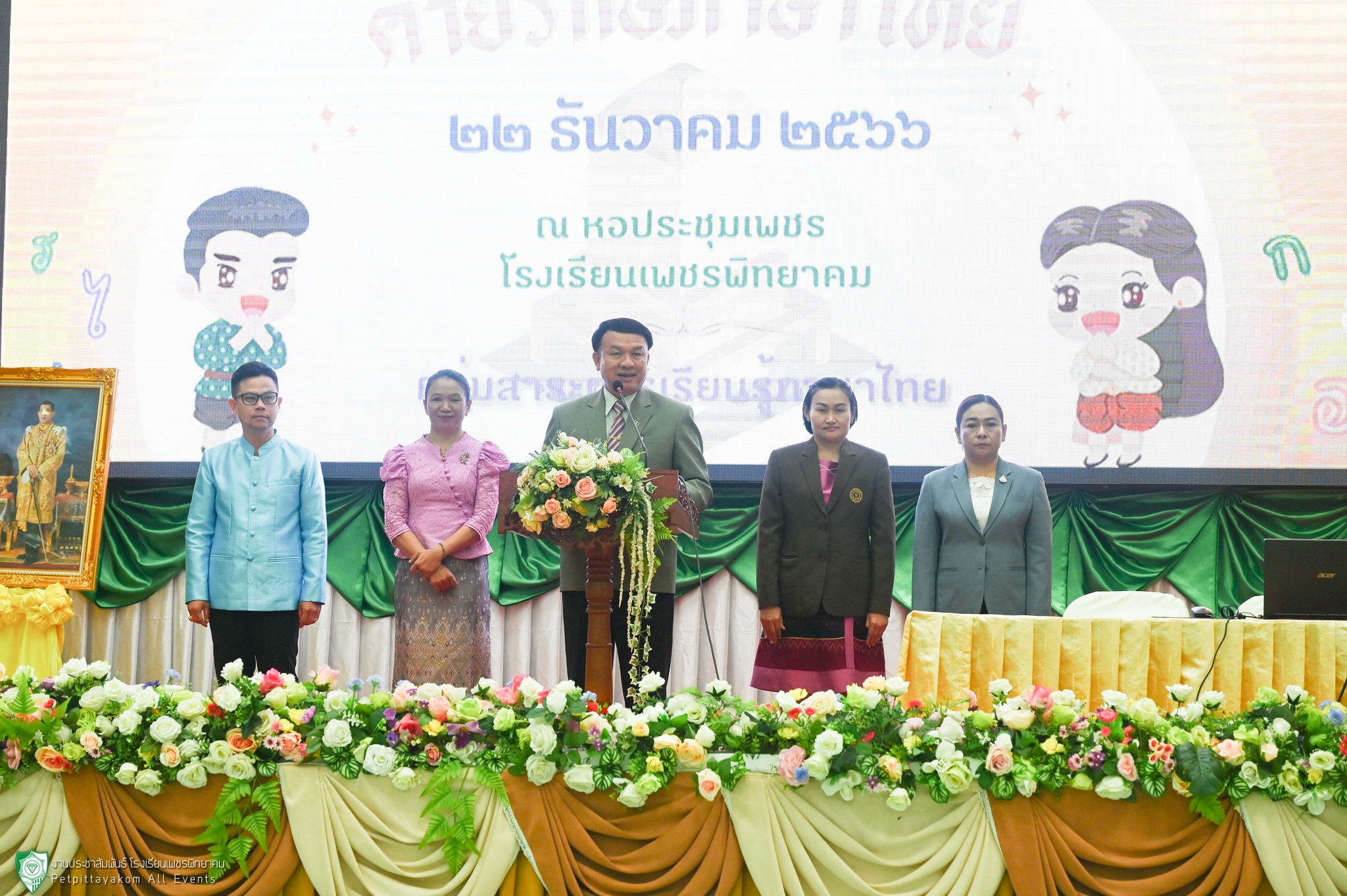 โรงเรียนเพชรพิทยาคมดำเนินการจัดโครงการกิจกรรมค่ายรักษ์ภาษาไทย ประจำปีการศึกษา 2566 ให้กับนักเรียนระดับชั้นมัธยมศึกษาปีที่ 1.5 - 1.11 เพื่อส่งเสริมความสำคัญของการศึกษาและพัฒนาภาษาไทยของเด็กและเยาวชน และพัฒนาทักษะภาษาไทยในการสื่อสารโดยมี นายวิเศษ ปิ่นพิทักษ์ ผู้อำนวยการโรงเรียน เป็นประธานพิธี พร้อมด้วยรองผู้อำนวยการ และคณะครูกลุ่มสาระการเรียนรู้ภาษาไทยเข้าร่วมกิจกรรม เมื่อวันที่ 22 ธันวาคม 2566 ณ หอประชุมเพชร โรงเรียนเพชรพิทยาคม