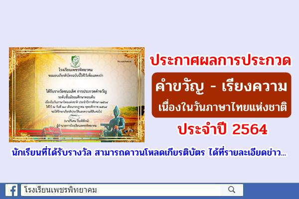 ประกาศผลการประกวดคำขวัญ - เรียงความ เนื่องในวันภาษาไทยแห่งชาติ ประจำปี 2564
