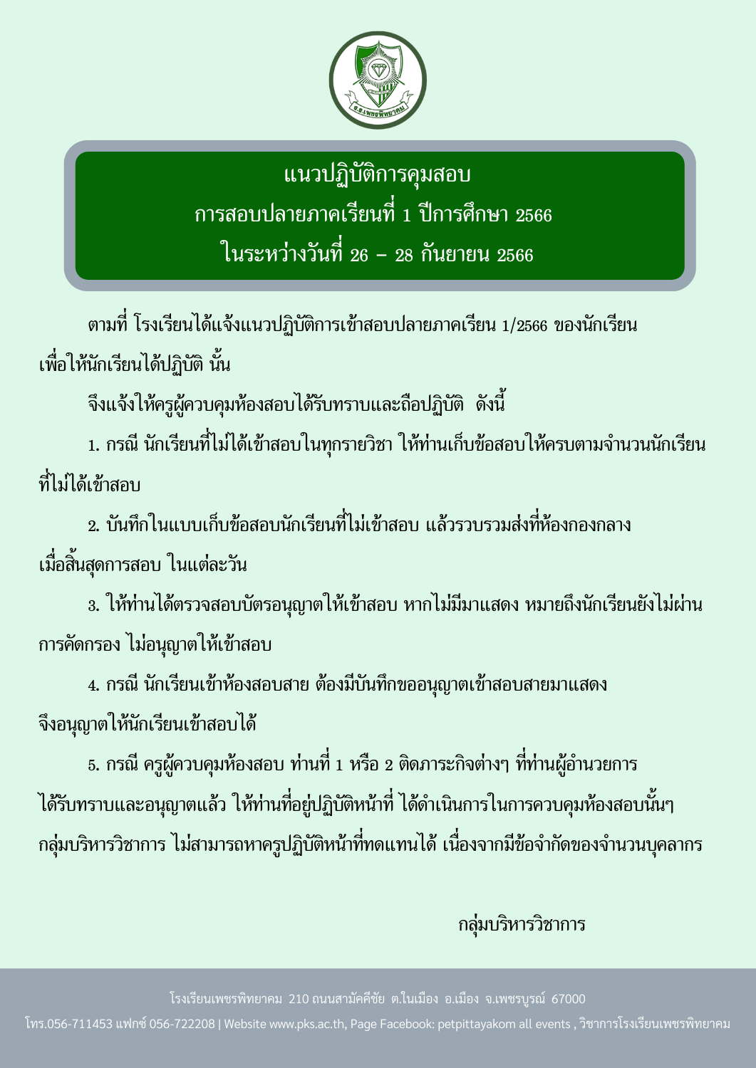 แนวปฏิบัติการคุมสอบ การสอบปลายภาคเรียนที่ 1 ปีการศึกษา 2566 ในระหว่างวันที่ 26 - 28 กันยายน 2566