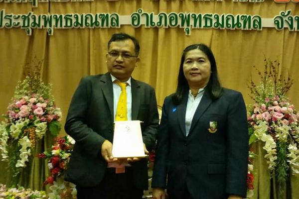นางสุพิชญา เหล็กแดง รองผู้อำนวยการ กลุ่มบริหารวิชาการ โรงเรียนเพชรพิทยาคม และนายมิตรสัน ด้วงธรรม ครูชำนาญการพิเศษ รักษาราชการแทนรองผู้อำนวยการกลุ่มบริหารกิจการนักเรียน โรงเรียนเพชรพิทยาคม เข้าร่วมพิธีมอบรางวัลเชิดชูเกียรติเสมา ป.ป.ส. โครงการสถานศึกษาสีขาว ปลอดยาเสพติดและอบายมุข ปี2559 วันพุธที่ 28 ธันวาคม พ.ศ. 2560 เวลา 13.30 น. ณ หอประชุมพุทธมณฑล อำเภอพุทธมณฑล จังหวัดนครปฐม
