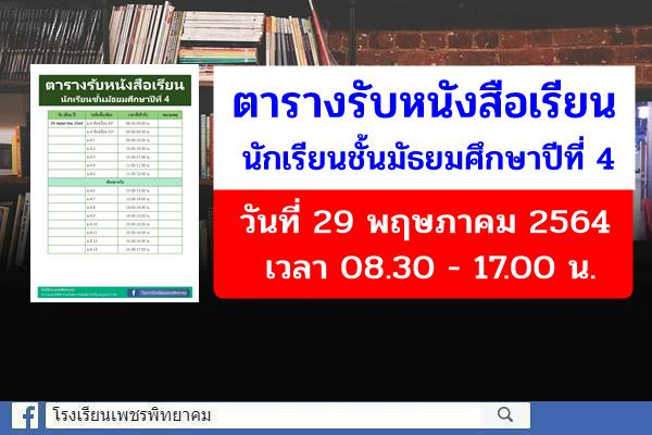 ตารางรับหนังสือเรียน นักเรียนชั้นมัธยมศึกษาปีที่ 4 วันที่ 29 พฤษภาคม 2564 เวลา 08.30 - 17.00 น.