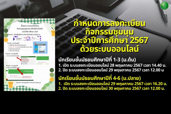 กำหนดการลงทะเบียน กิจกรรมชุมนุม ประจำปีการศึกษา 2567 ด้วยระบบออนไลน์