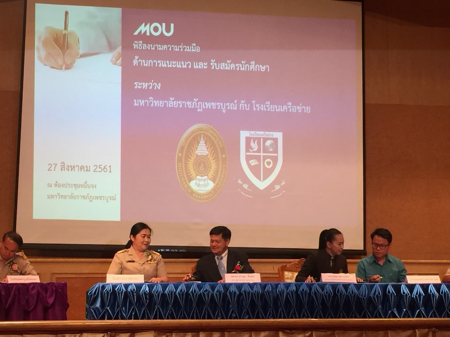 ผศ.ดร.ประยูร ลิ้มสุข อธิการบดี ม.ราชภัฏเพชรบูรณ์ ได้กล่าวขอบคุณอาจารย์ทุกท่านเป็นอย่างสูง เนื่องจากในทุกๆปีที่ผ่านมา มหาวิทยาลัยราชภัฏเพชรบูรณ์ ได้รับความร่วมมือเป็นอย่างดีจากโรงเรียนต่างๆในจังหวัดเพชรบูรณ์ ที่อำนวยความสะดวกให้มหาวิทยาลัยราชภัฏเพชรบูรณ์ ได้ออกแนะแนวการศึกษา ภายในงานมีการจัดแสดงผลงานทางวิชาการ และจัดนิทรรศการแสดงสาขาวิชาที่เปิดสอน เพื่อให้ครู และนักเรียนที่มาร่วมกิจกรรมได้ชมอีกด้วย