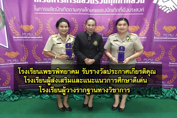 โรงเรียนเพชรพิทยาคม รับรางวัลประกาศเกียรติคุณโรงเรียนผู้ส่งเสริมและแนะแนวการศึกษาดีเด่น โรงเรียนผู้วางรากฐานทางวิชาการ