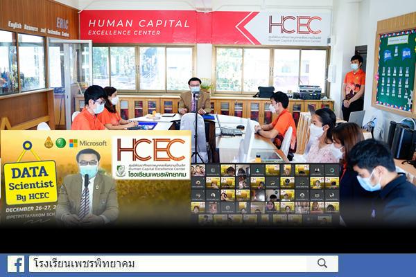 วันที่ 26 - 27 ธันวาคม 2564 ศูนย์พัฒนาศักยภาพบุคคลเพื่อความเป็นเลิศ (Human Capital Exellence Center : HCEC) โรงเรียนเพชรพิทยาคมได้จัดการอบรมขยายผลโครงการพัฒนาทักษะด้านดิจิทัล มุ่งสู่อาชีพนักวิทยาศาสตร์ข้อมูล (Data Scientists) ให้กับครูและนักเรียน โรงเรียนในเขตพื้นที่บริการของศูนย์ฯ จำนวน 165 คน ในรูปแบบการอบรมออนไลน์ โดย นายวิเศษ ปิ่นพิทักษ์ ผู้อำนวยการโรงเรียนเพชรพิทยาคม ผู้อำนวยการศูนย์ HCEC โรงเรียนเพชรพิทยาคม ให้เกียรติเป็นประธานเปิดการอบรม และนางสุพัตรา บุญขะจาย หัวหน้ากลุ่มสาระการเรียนรู้ ภาษาต่างประเทศ กล่าวรายงาน ซึ่งการอบรมครั้งนี้ ได้รับความอนุเคราะห์จากคณะวิทยากร 2 ท่าน ได้แก่ นางสาวสถาปนา บุญมาก และนางสาวชวนพิศ เหล็กใหล เป็นวิทยากร ในการบรรยายและให้ความรู้แก่ผู้เข้ารับการอบรม