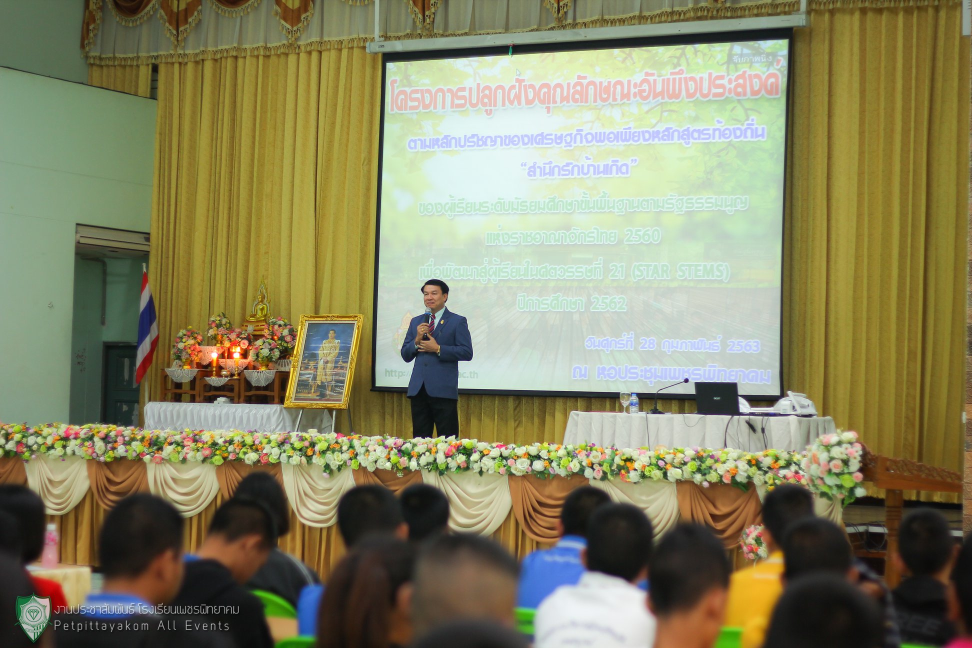เมื่อวันที่ 28 กุมภาพันธ์ 2563 โรงเรียนเพชรพิทยาคม ดำเนินการจัดโครงการอบรมเชิงปฏิบัติการปลูกฝังคุณลักษณะอันพึงประสงค์ตามหลักปรัชญาของเศรษฐกิจพอเพียงหลักสูตรท้องถิ่น “สำนักรักท้องถิ่น” ในหัวข้อ“ศรีเทพเมืองเก่า (สืบสานวัฒนธรรมท้องถิ่น)” โดยมีนายวิเศษ ปิ่นพิทักษ์ ผู้อำนวยการโรงเรียนเพชรพิทยาคม ให้เกียรติเป็นประธานในพิธีเปิดโครงการ และได้รับเกียรติจาก ดร.วิศัลย์ โฆษิตานนท์ เป็นวิทยากรบรรยายพิเศษ พร้อมคณะครูและนักเรียนชั้นมัธยมศึกษาปีที่ 2 (3) เข้าร่วมโครงการ ณ หอประชุมเพชร โรงเรียนเพชรพิทยาคม จังหวัดเพชรบูรณ์