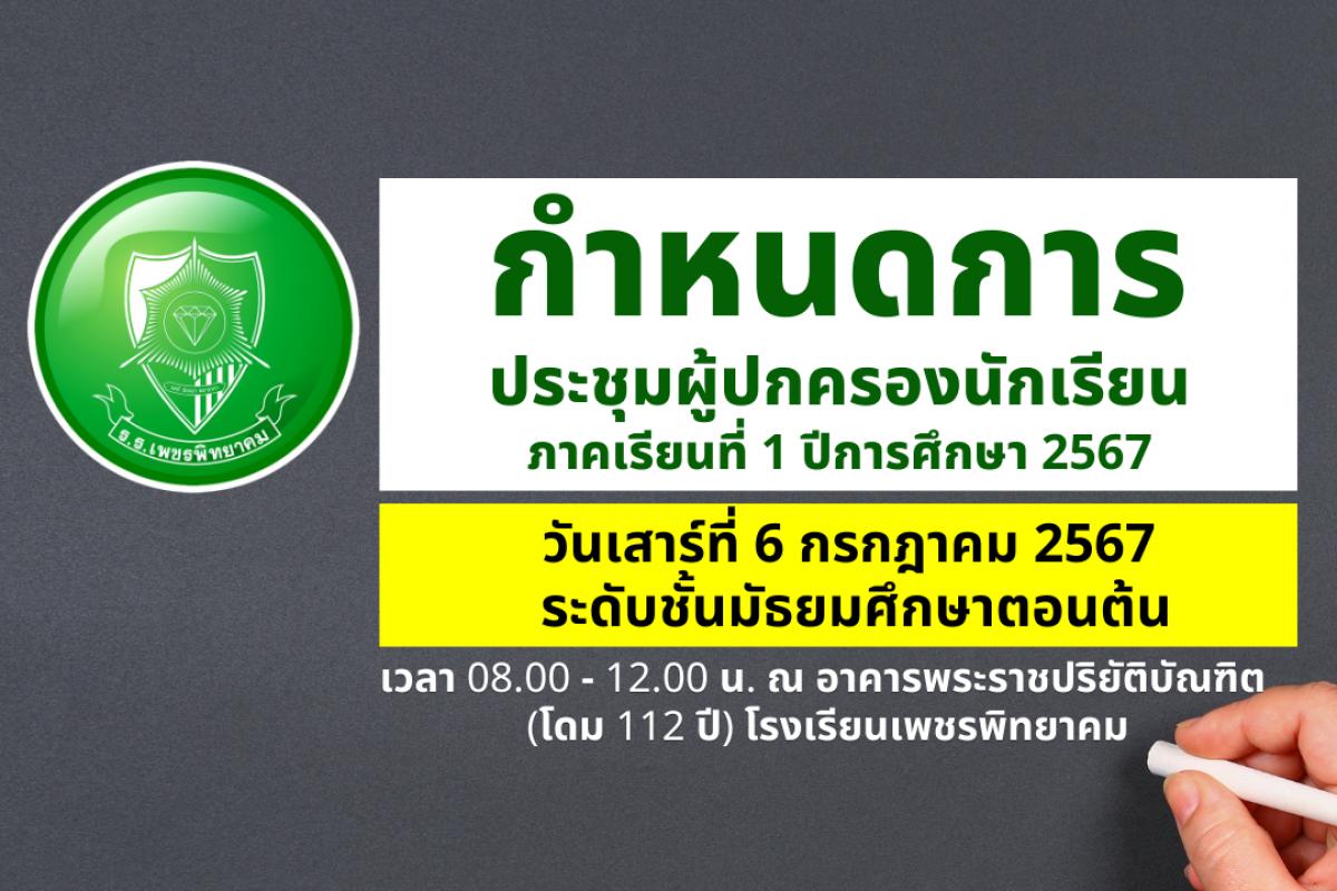 กำหนดการประชุมผู้ปกครอง ภาคเรียนที่ 1/2567 วันเสาร์ที่ 6 กรกฎาคม 2567 ระดับชั้นมัธยมศึกษาตอนต้น เวลา 08.00 – 12.00 น.
