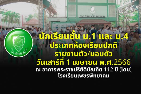 นักเรียนชั้นมัธยมศึกษาปีที่ 1 และ 4 ประเภทห้องเรียนปกติ รายงานตัว/มอบตัว วันเสาร์ที่ 1 เมษายน 2566 ณ อาคารพระราชปริยัติบัณฑิต 112 ปี (โดม)โรงเรียนเพชรพิทยาคม