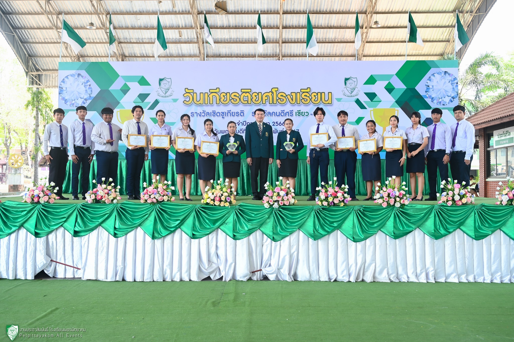 โรงเรียนเพชรพิทยาคมดำเนินการจัดกิจกรรมวันเกียรติยศโรงเรียน ประจำปีการศึกษา 2566 เพื่อยกย่องเชิดชูเกียรติข้าราชการครู บุคลากรทางการศึกษาและนักเรียนที่สร้างชื่อเสียงให้กับโรงเรียน และเสริมสร้างแบบอย่างที่ดีให้กับนักเรียนโดยมี นายวิเศษ ปิ่นพิทักษ์ ผู้อำนวยการโรงเรียน เป็นประธานในพิธี พร้อมด้วยรองผู้อำนวยการ คณะครูและนักเรียนร่วมกิจกรรม เมื่อวันที่ 29 กุมภาพันธ์ 2567 ณ อาคารพระราชปริยัติบัณฑิต 112 ปี โรงเรียนเพชรพิทยาคม