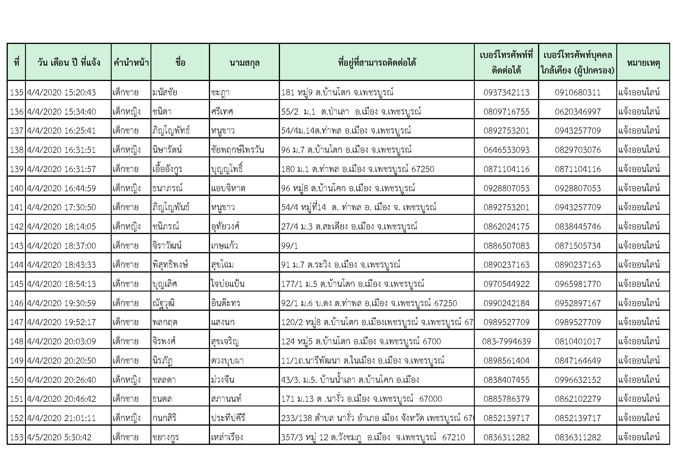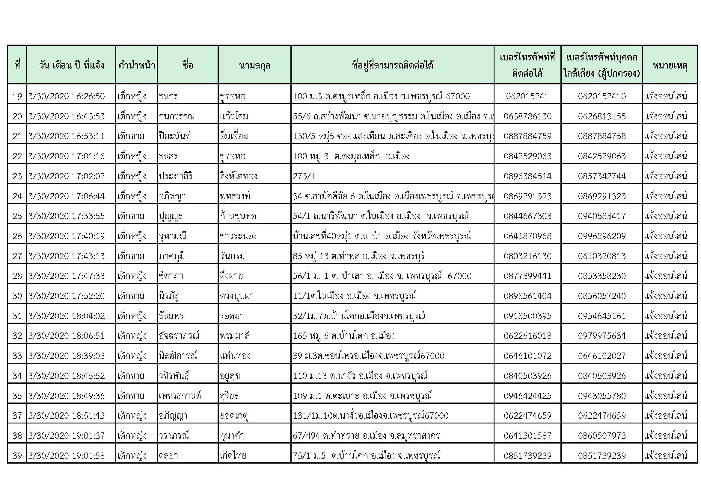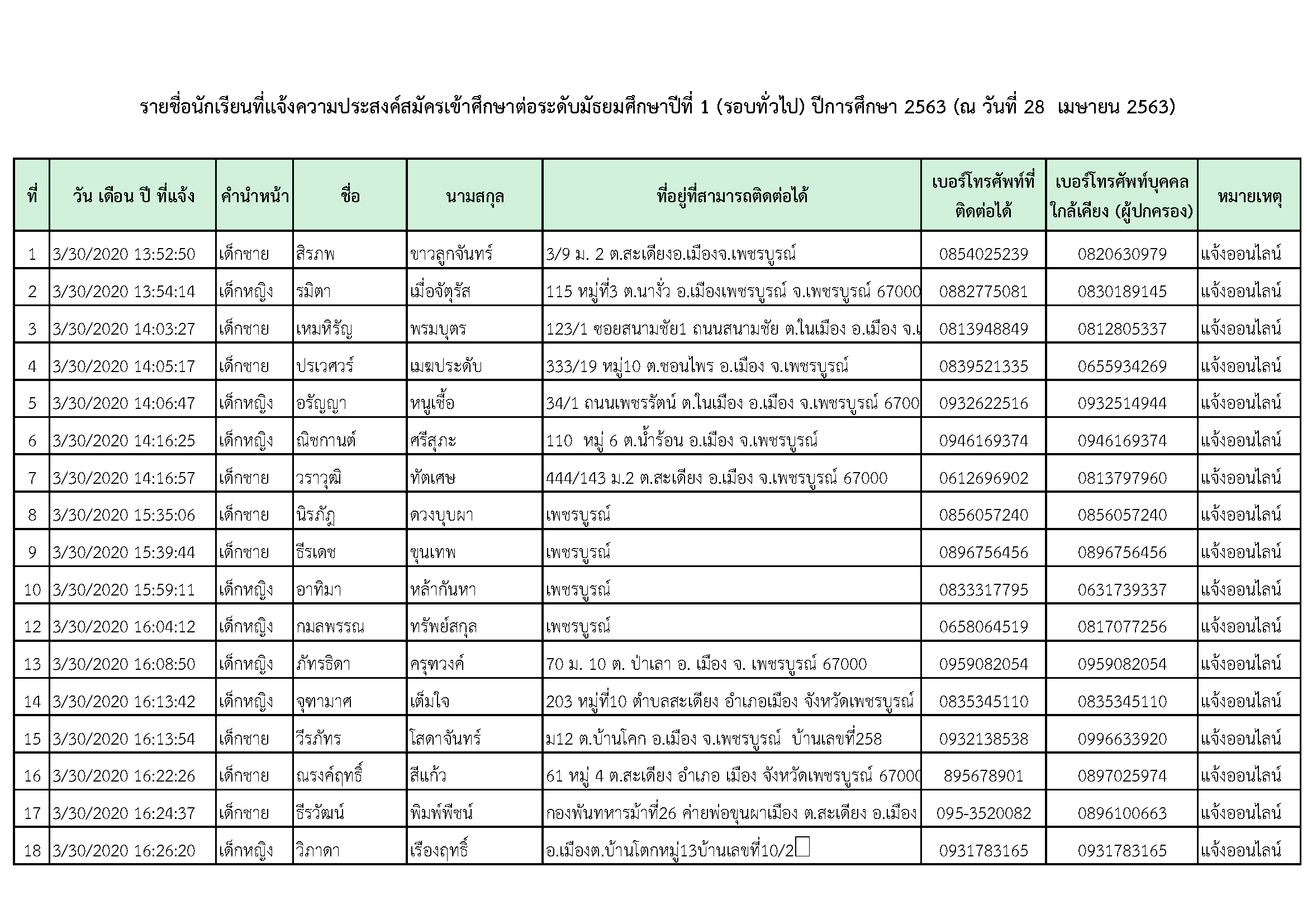 รายชื่อนักเรียนที่แจ้งความประสงค์สมัครเข้าศึกษาต่อระดับมัธยมศึกษาปีที่ 1 (รอบทั่วไป) ปีการศึกษา 2563 (ณ วันที่ 28 เมษายน 2563)