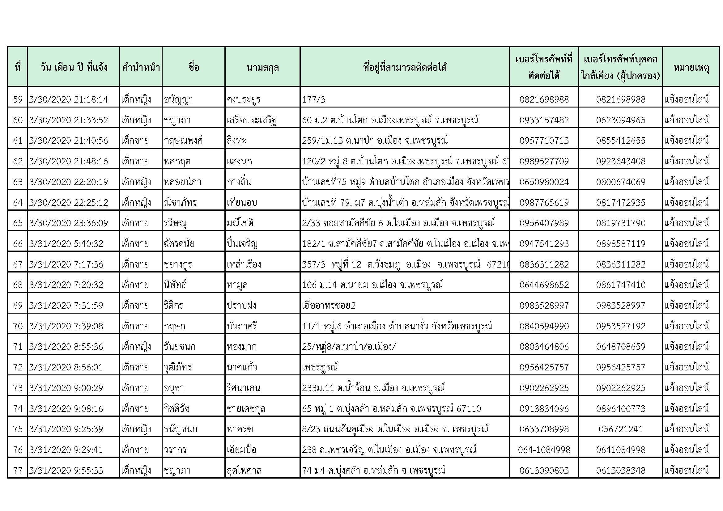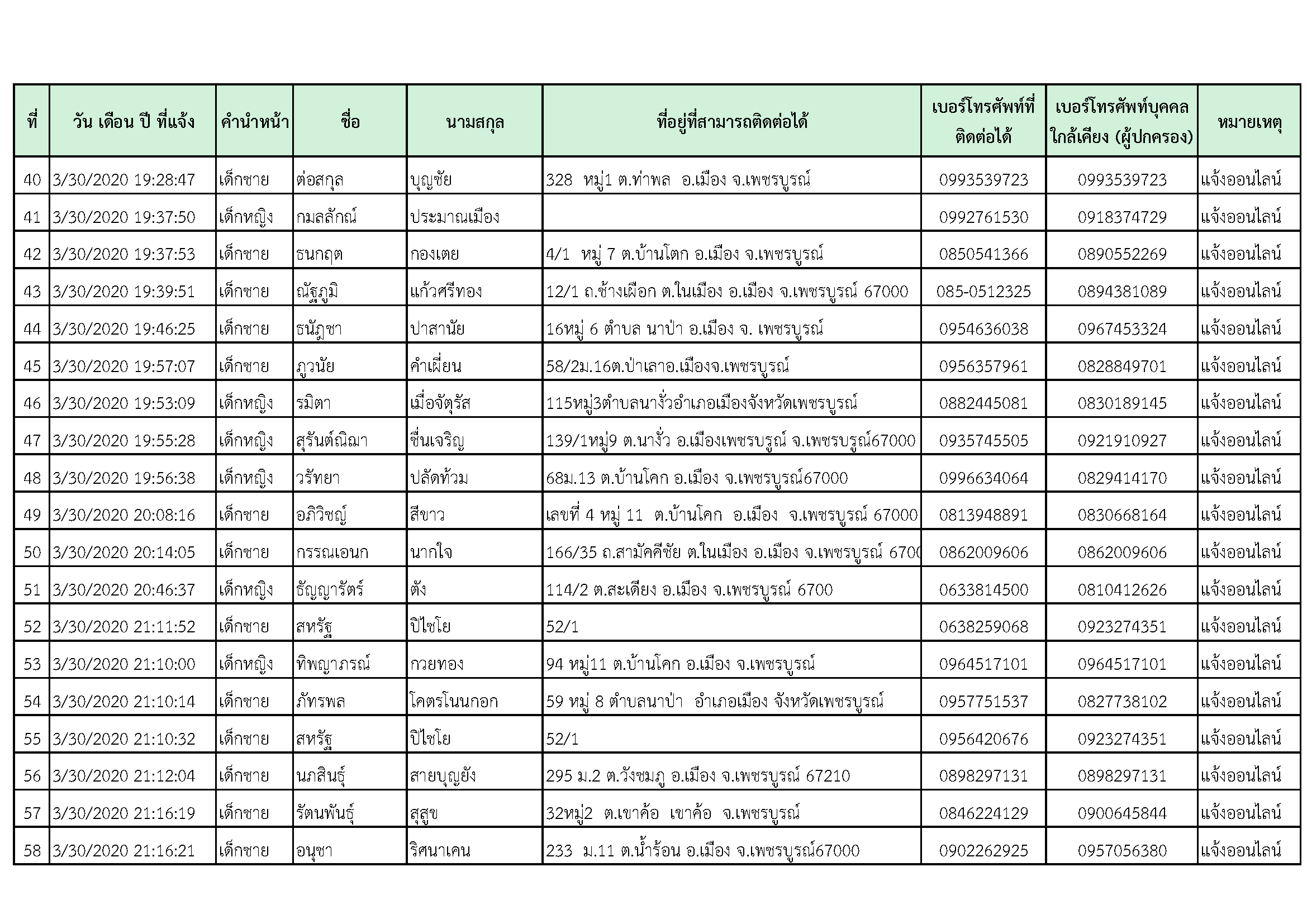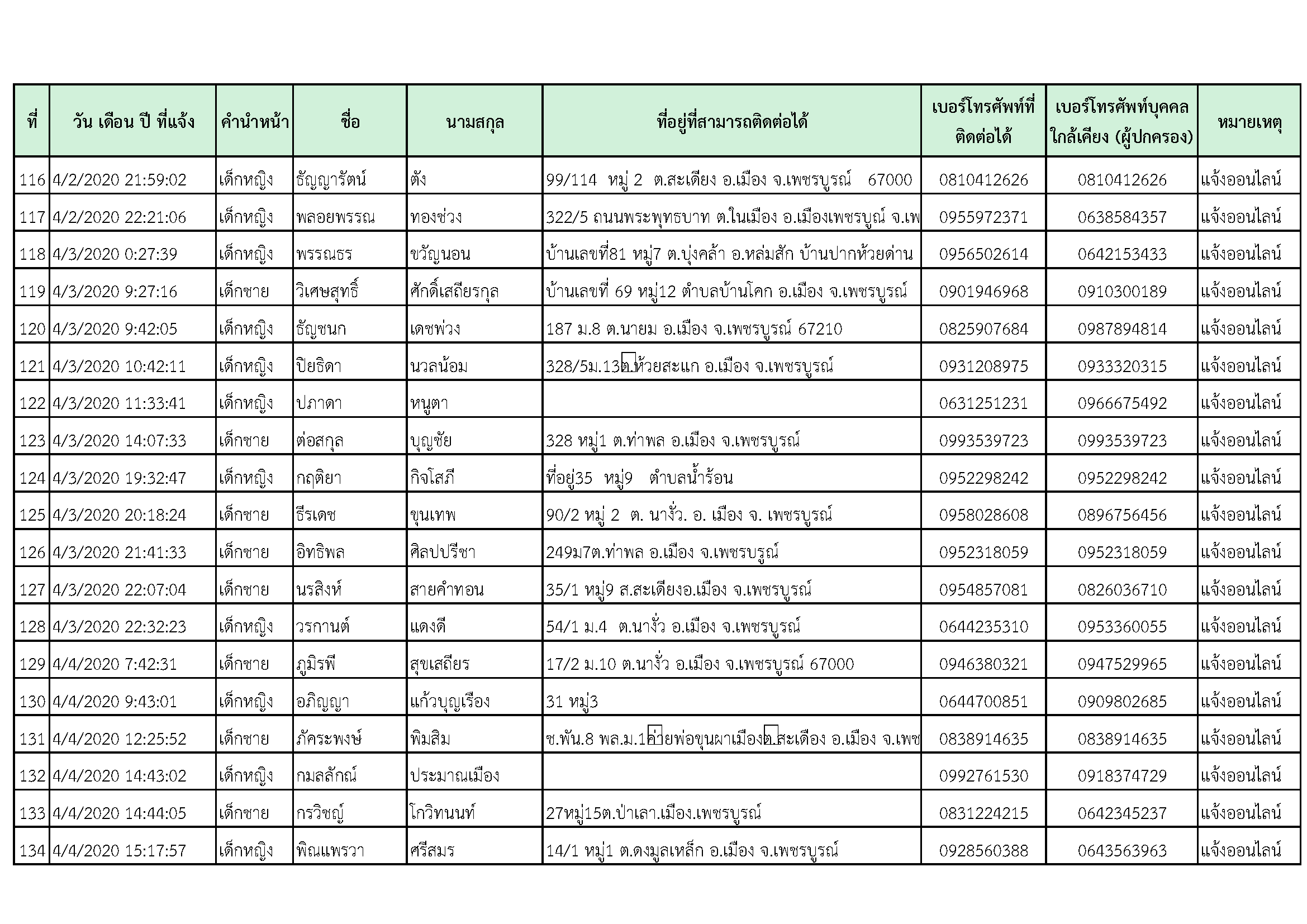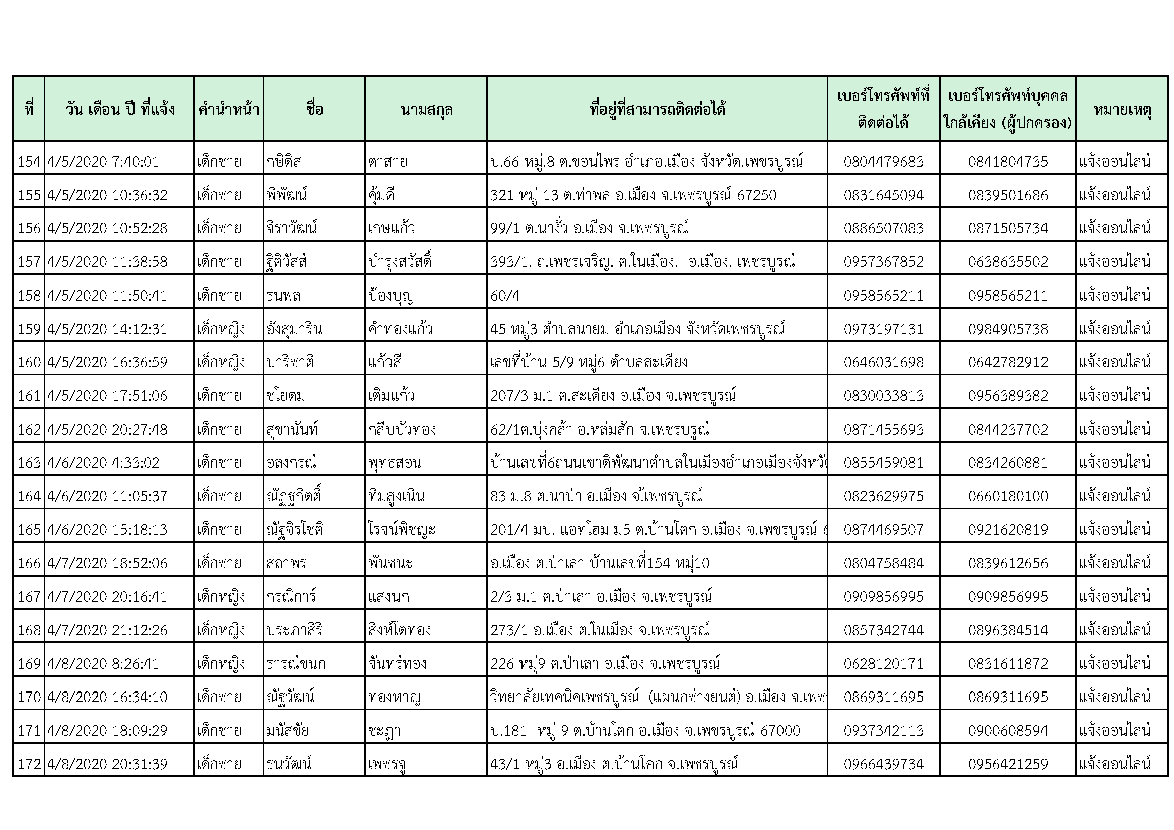 รายชื่อนักเรียนที่แจ้งความประสงค์สมัครเข้าศึกษาต่อระดับมัธยมศึกษาปีที่ 1 (รอบทั่วไป) ปีการศึกษา 2563 (ณ วันที่ 28 เมษายน 2563)