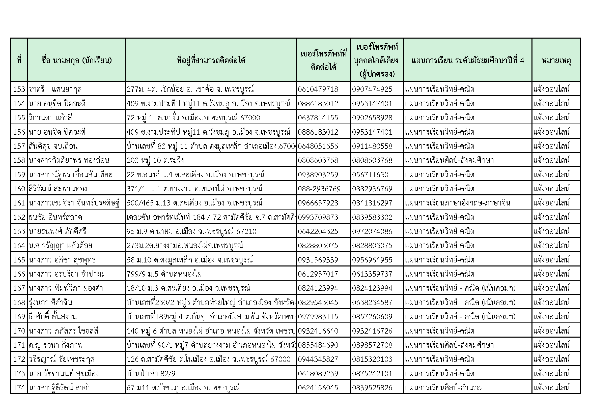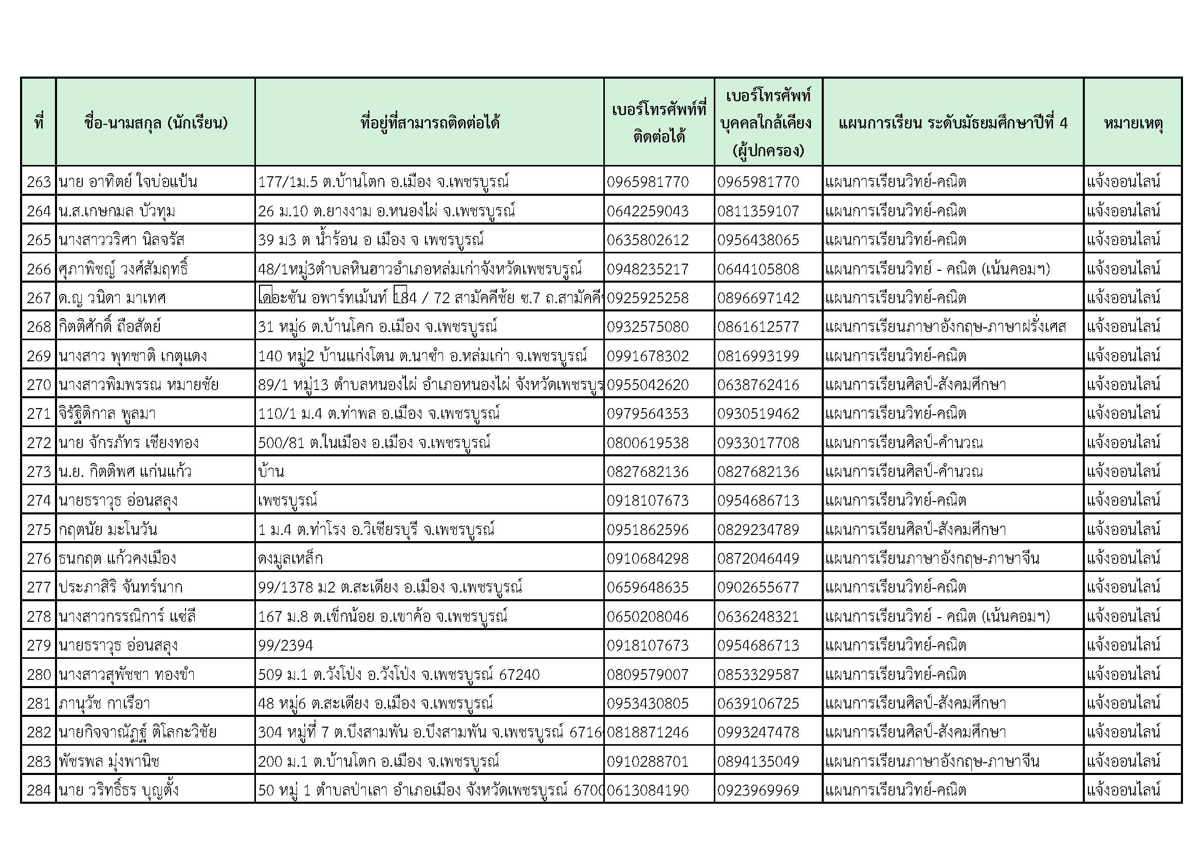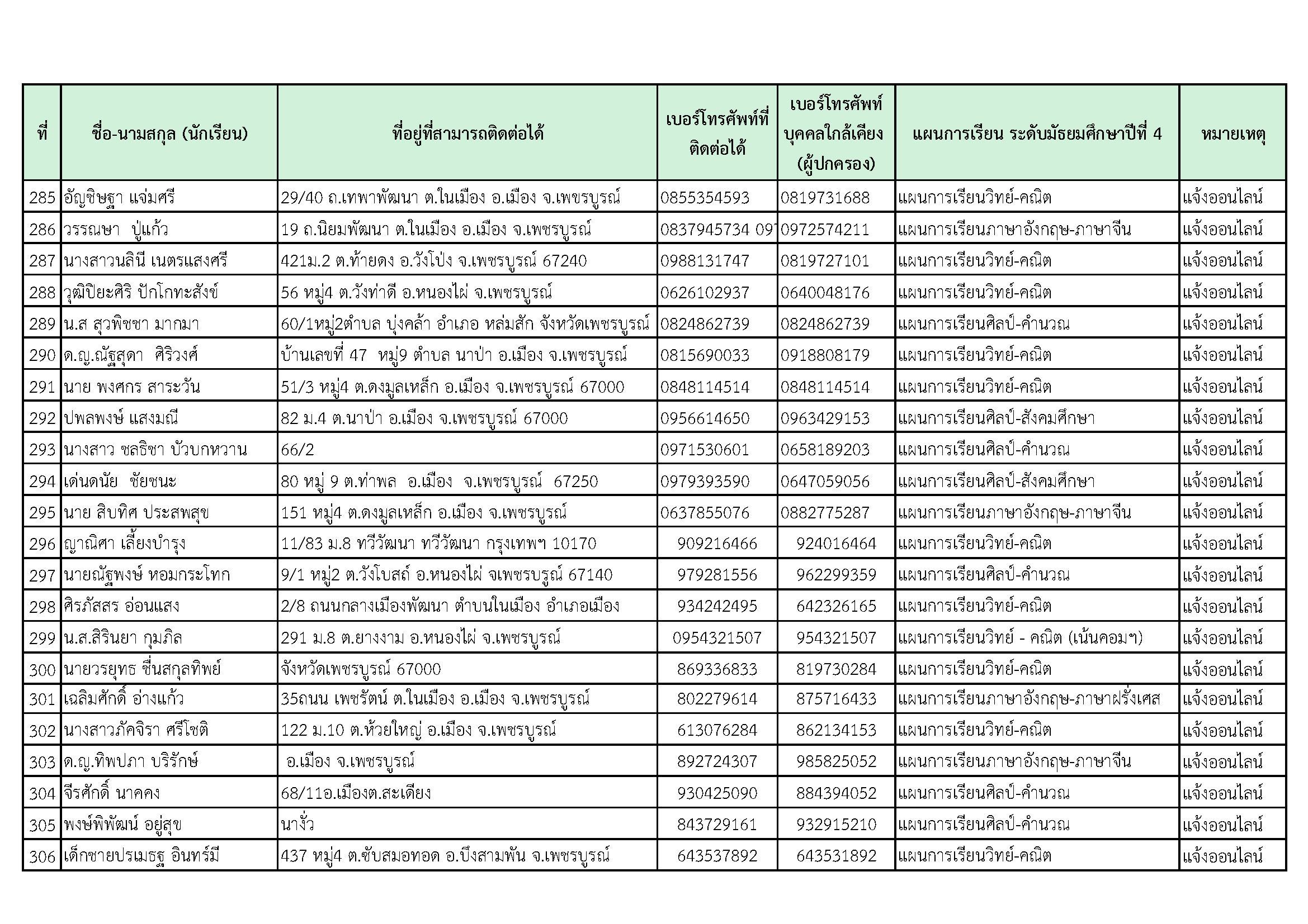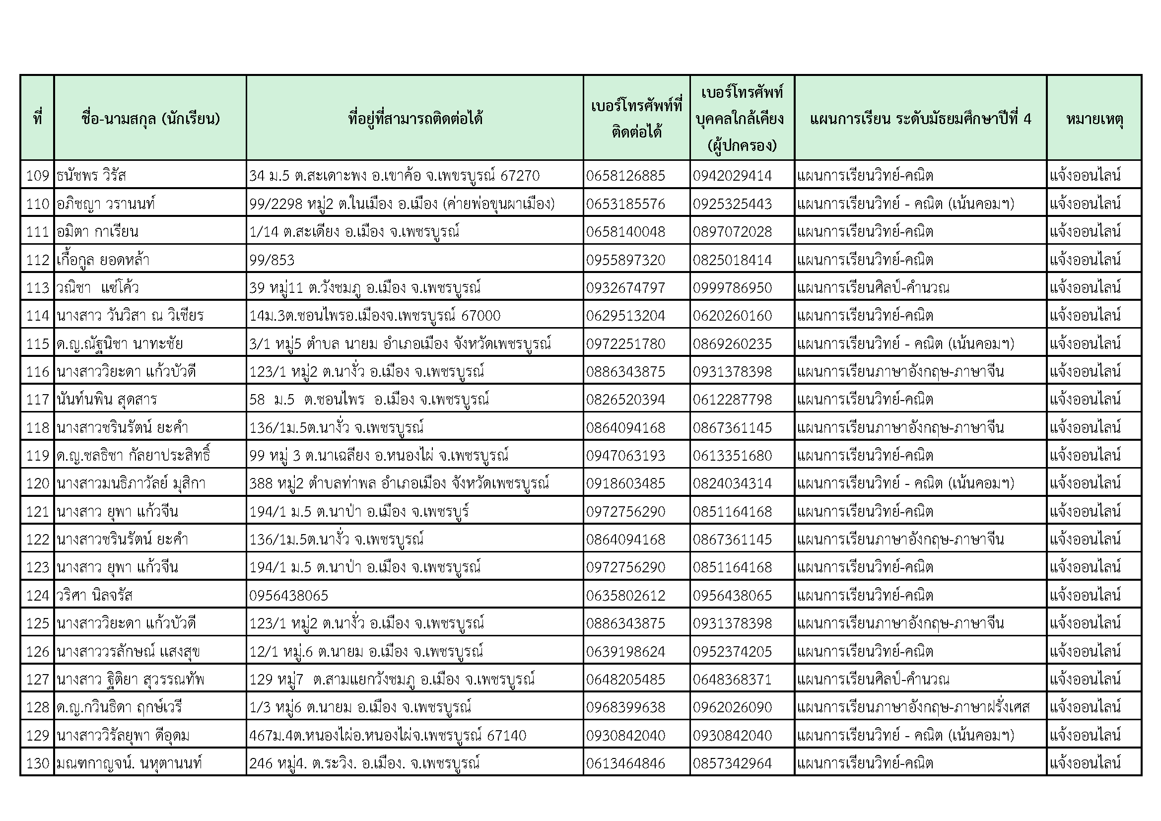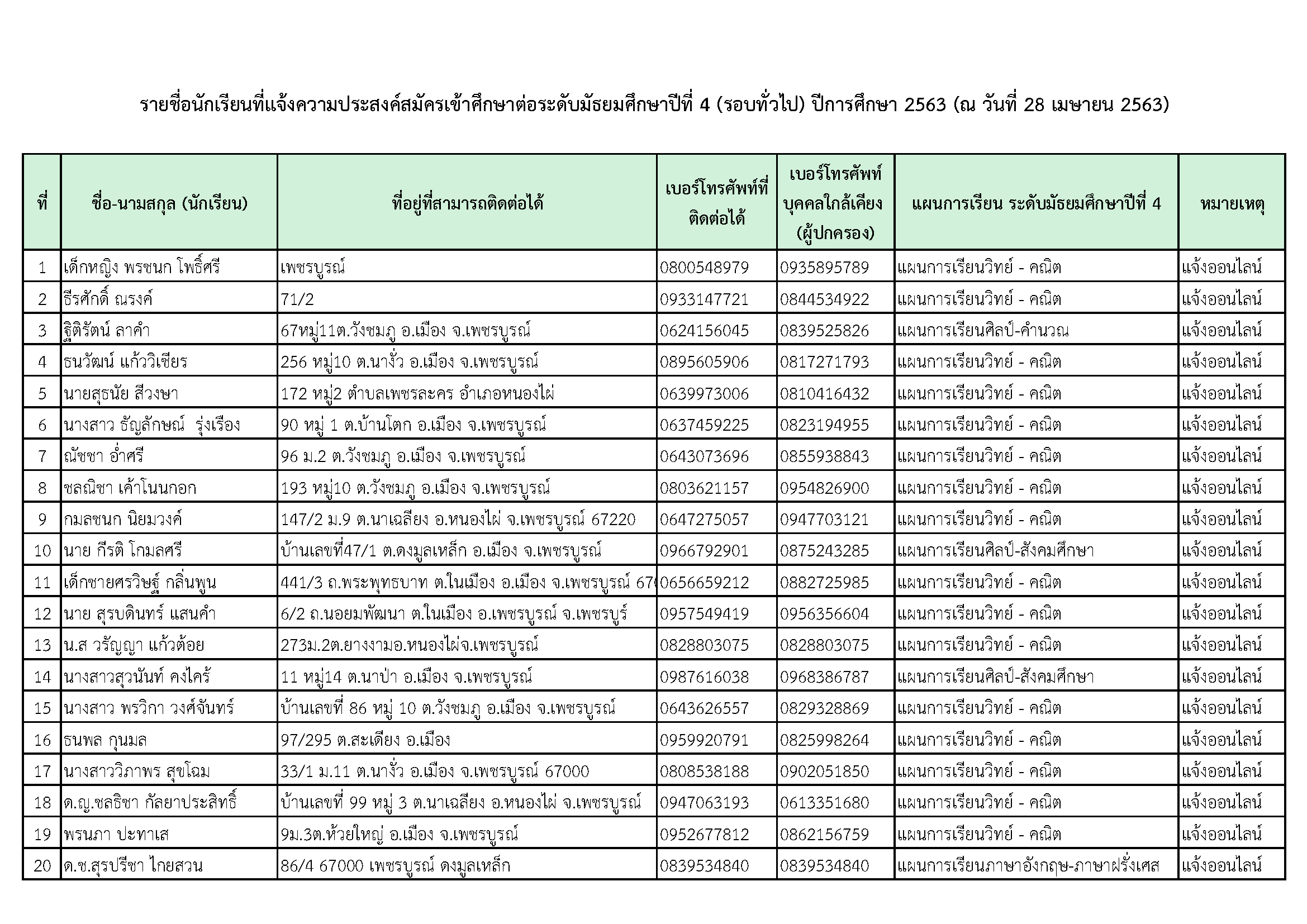 รายชื่อนักเรียนที่แจ้งความประสงค์สมัครเข้าศึกษาต่อระดับมัธยมศึกษาปีที่ 4 (รอบทั่วไป) ปีการศึกษา 2563 (ณ วันที่ 28 เมษายน 2563)