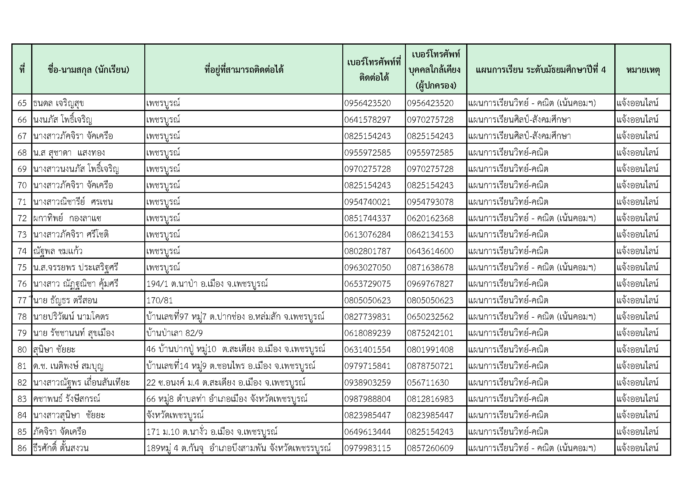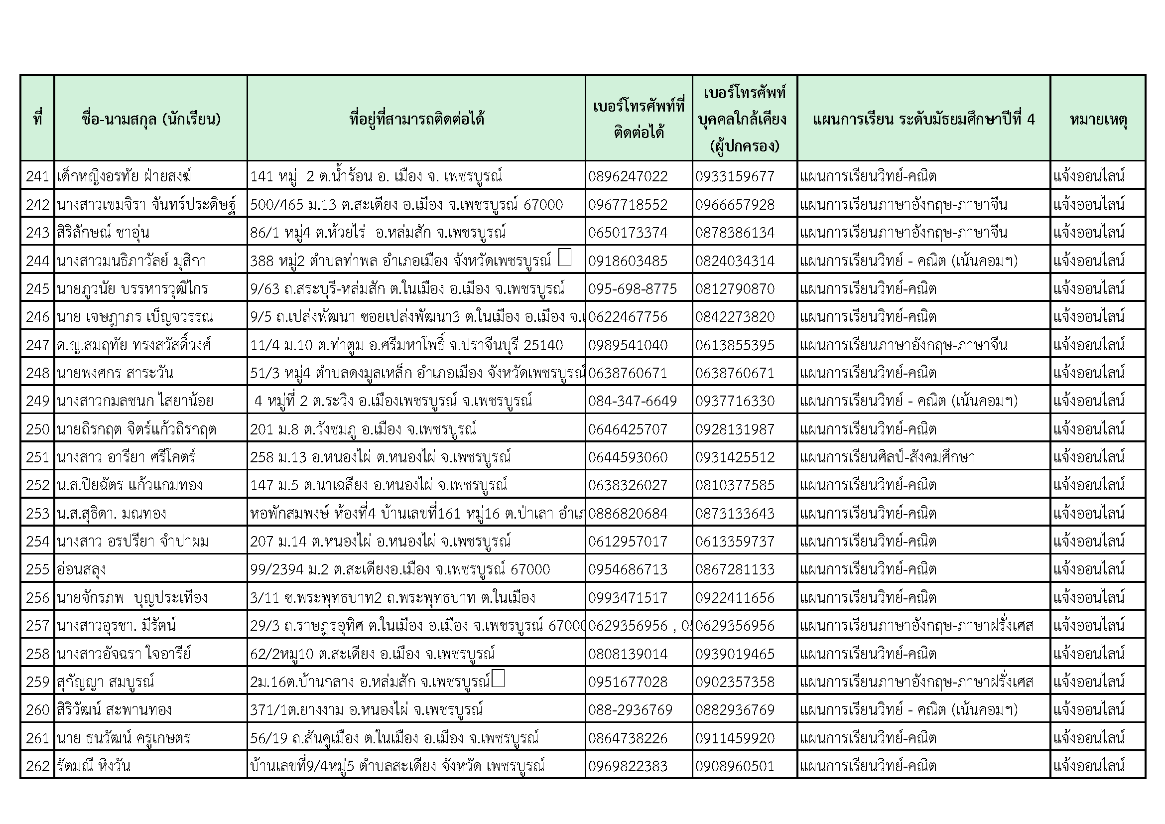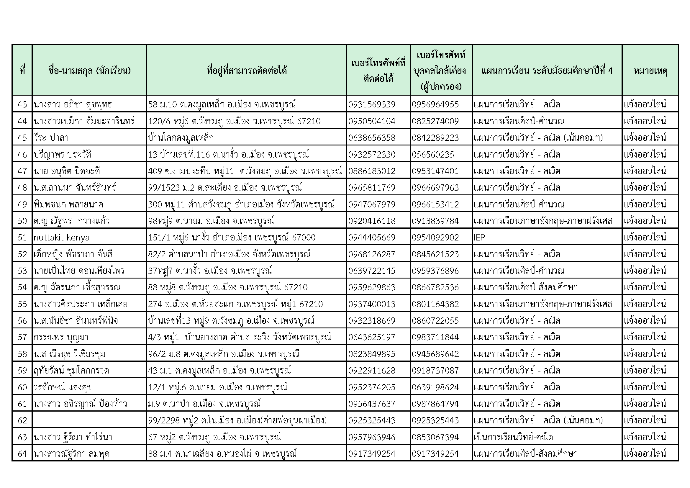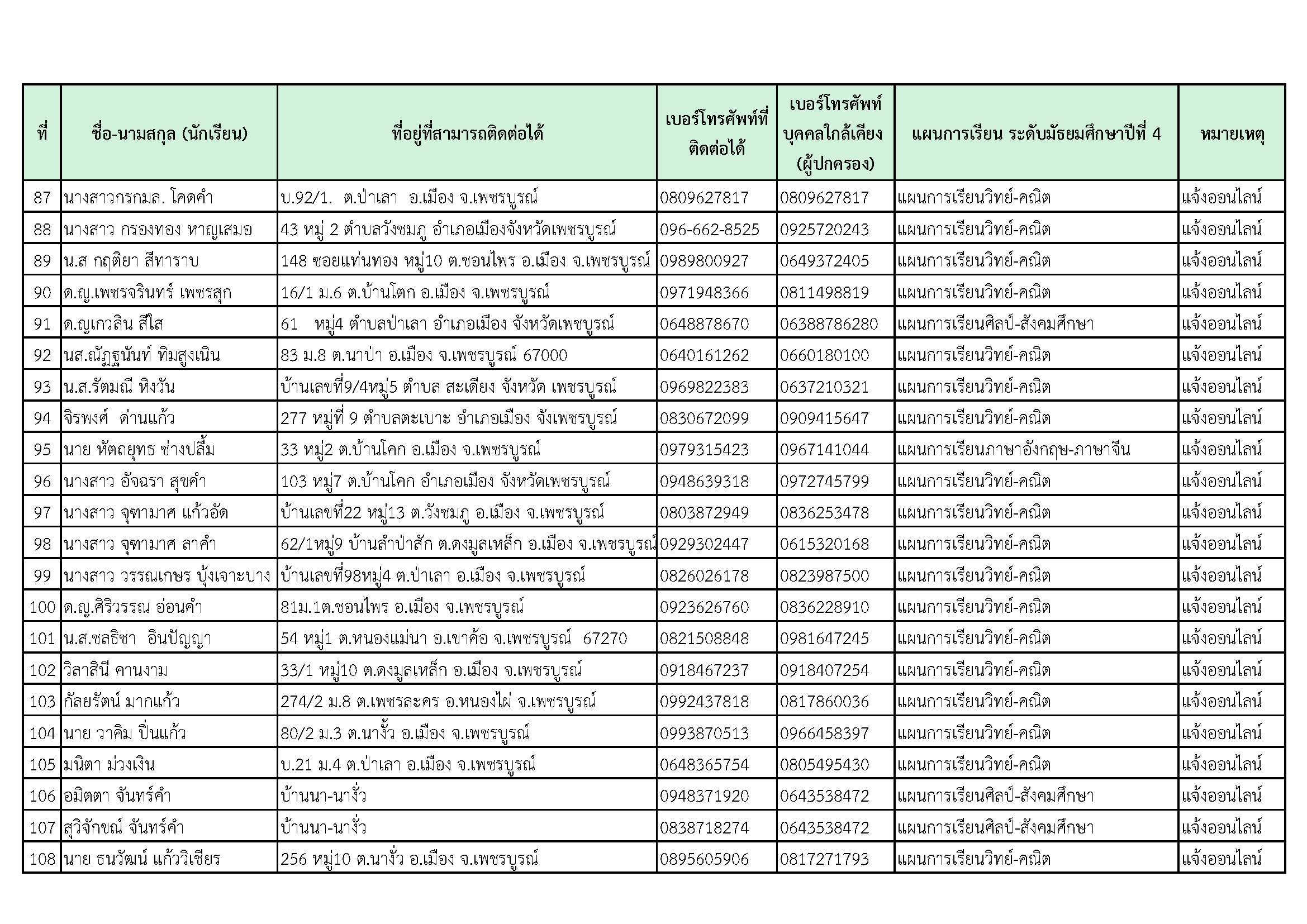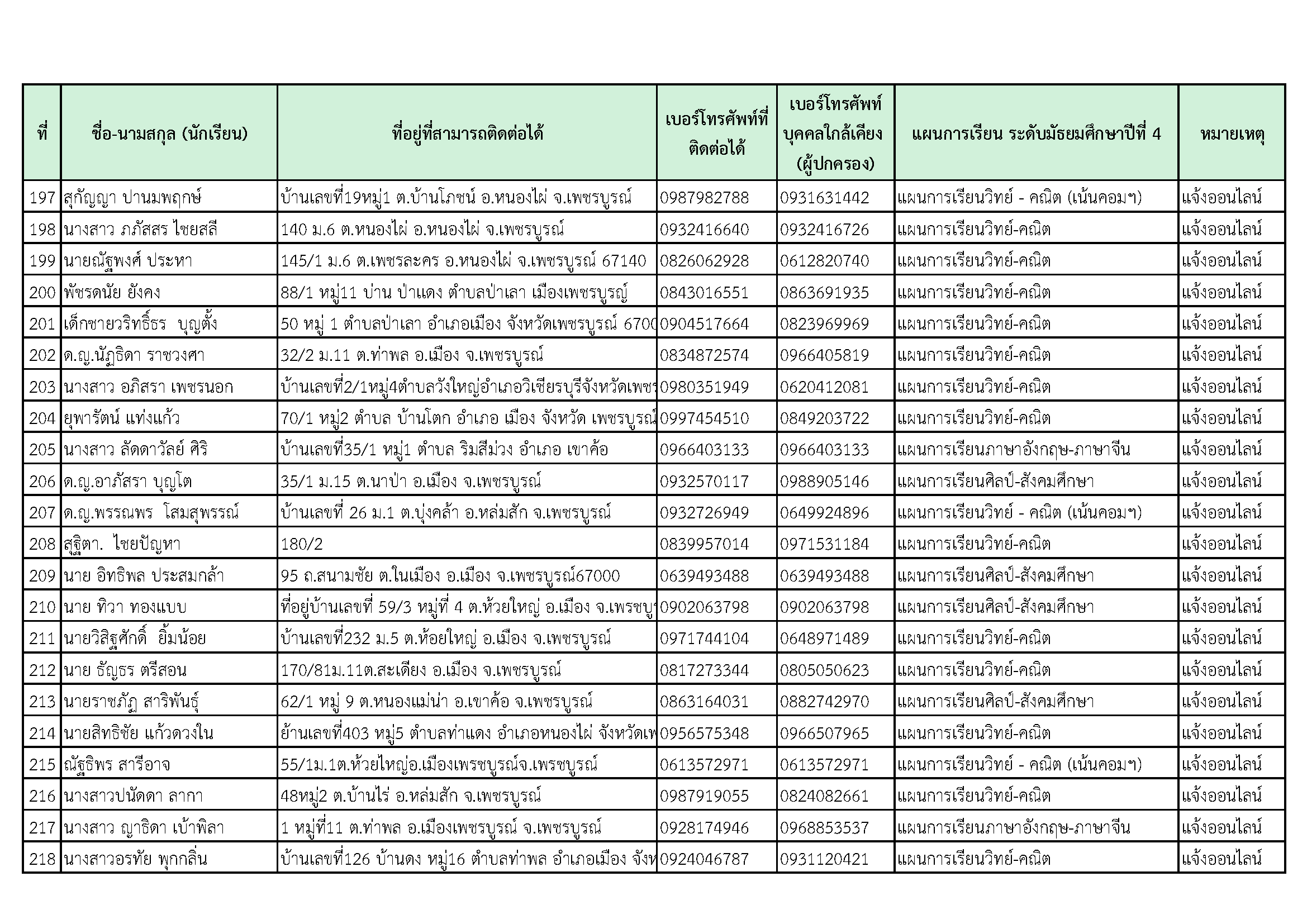 รายชื่อนักเรียนที่แจ้งความประสงค์สมัครเข้าศึกษาต่อระดับมัธยมศึกษาปีที่ 4 (รอบทั่วไป) ปีการศึกษา 2563 (ณ วันที่ 28 เมษายน 2563)