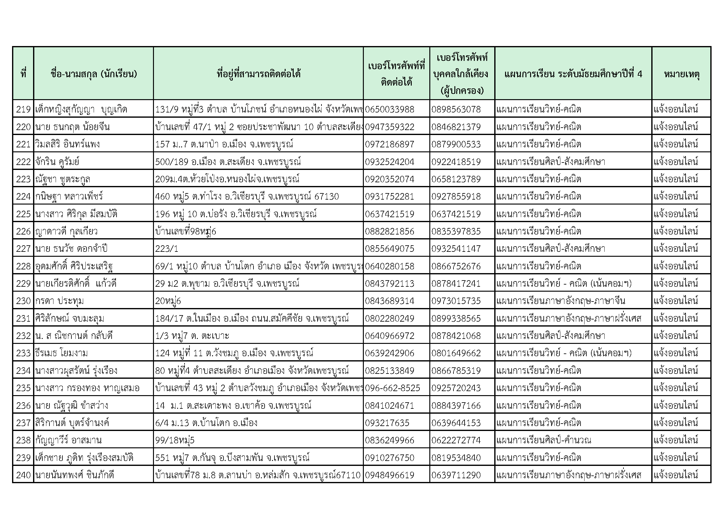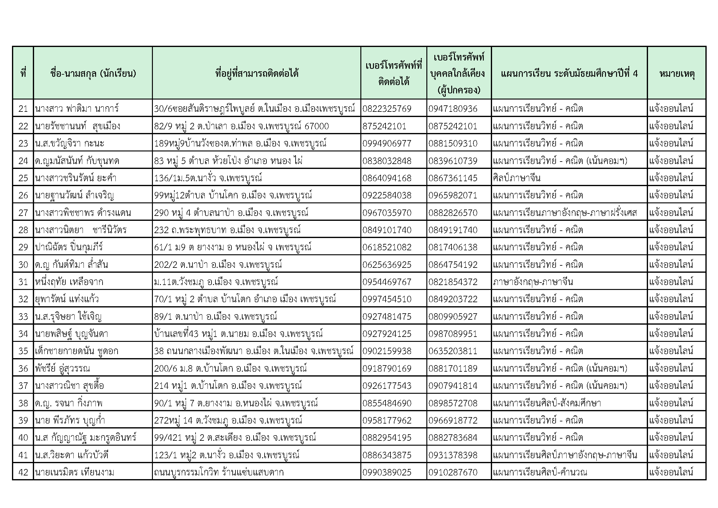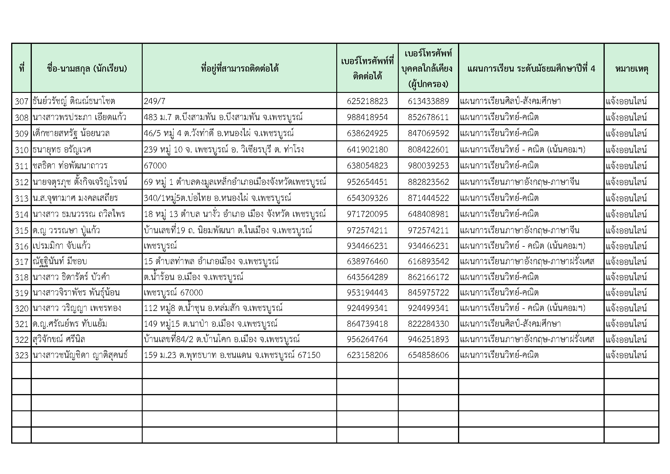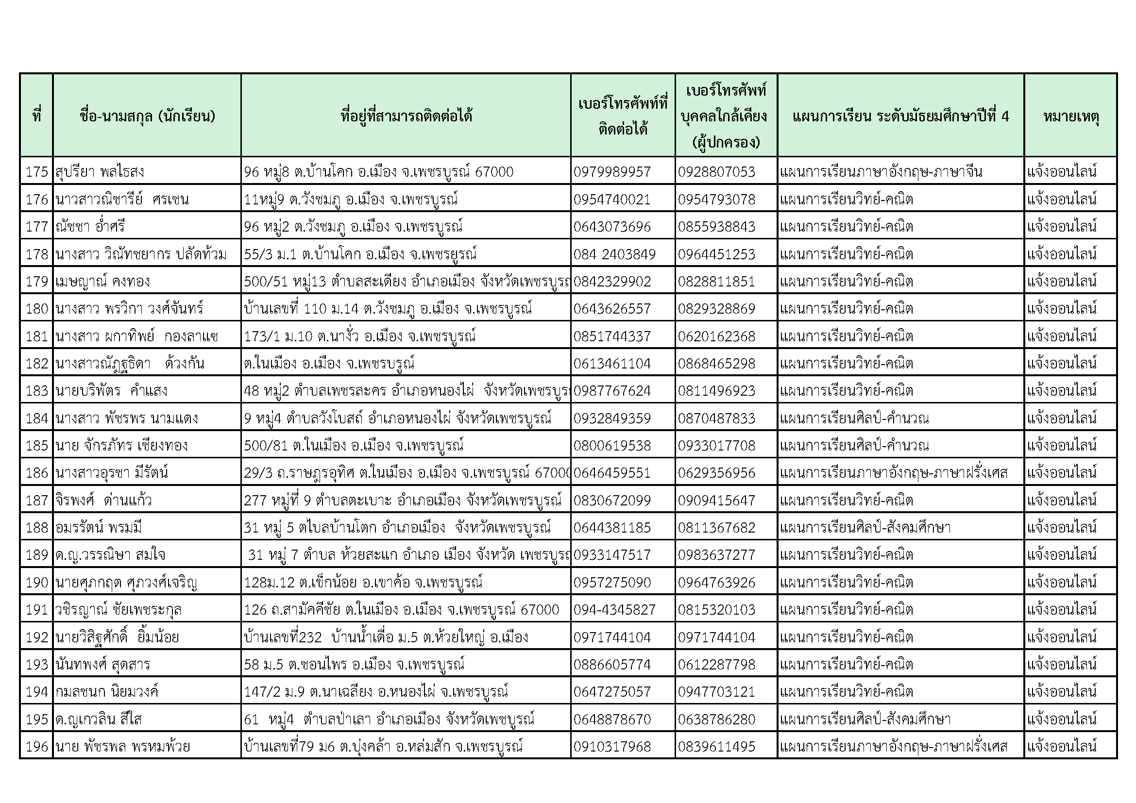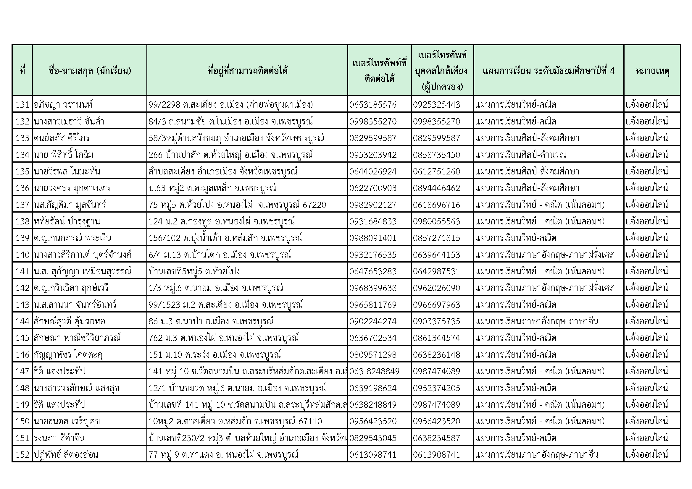 รายชื่อนักเรียนที่แจ้งความประสงค์สมัครเข้าศึกษาต่อระดับมัธยมศึกษาปีที่ 4 (รอบทั่วไป) ปีการศึกษา 2563 (ณ วันที่ 28 เมษายน 2563)