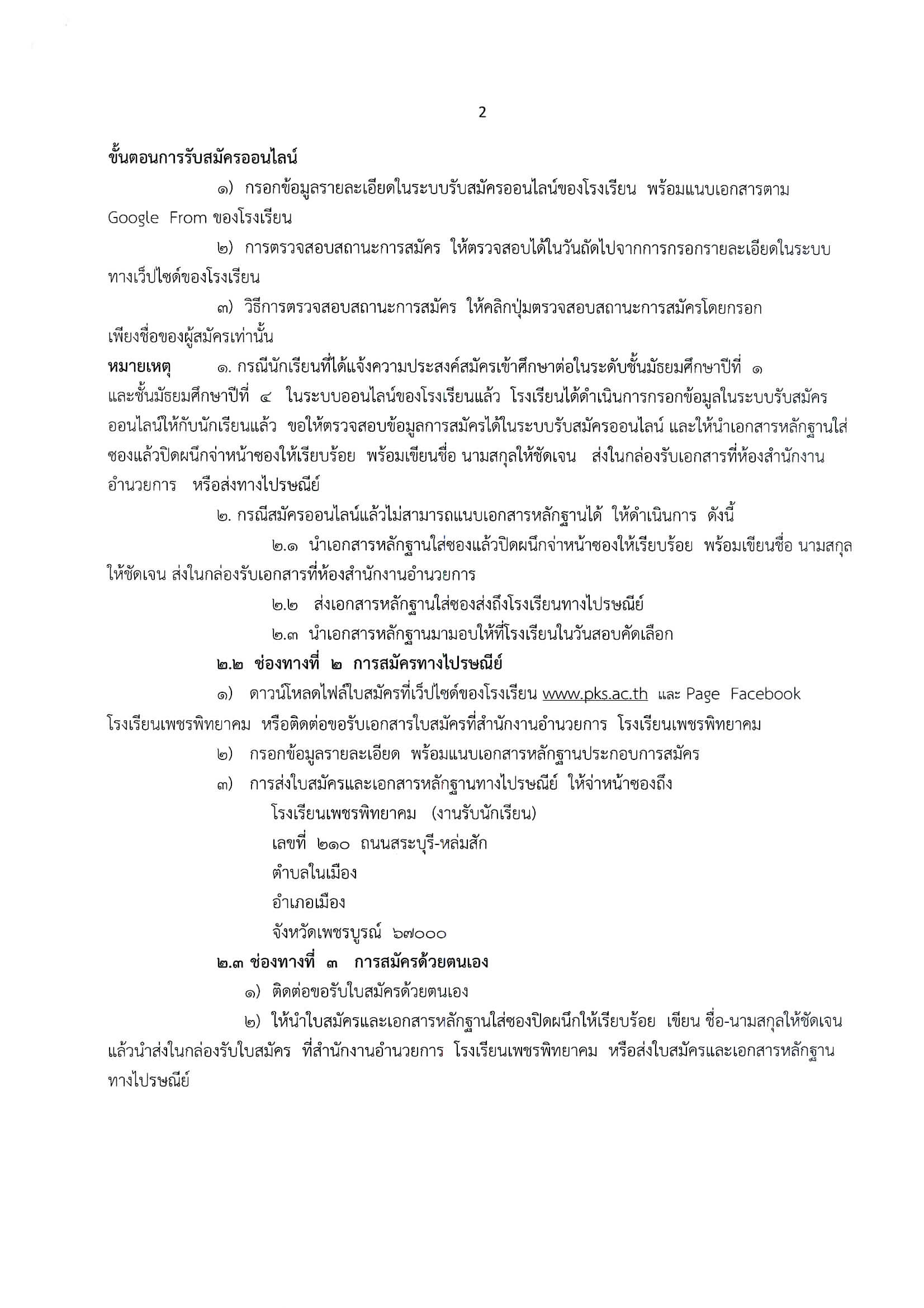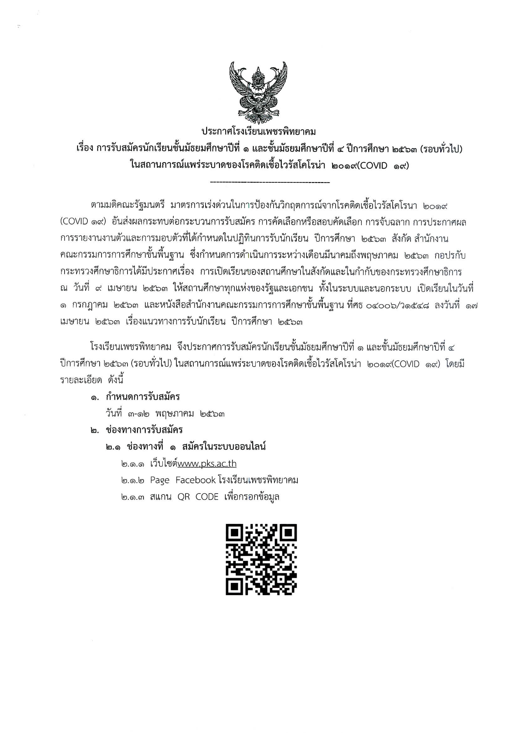 ประกาศโรงเรียนเพชรพิทยาคม เรื่อง การรับสมัครนักเรียนชั้นมัธยมศึกษาปีที่ 1 และชั้นมัธยมศึกษาปีที่ 4 ปีการศึกษา 2563 (รอบทั่วไป) ในสถานการณ์แพร่ระบาดของโรคติดเชื้อไว้รัสโคโรน่า 2019 (COVID 19)