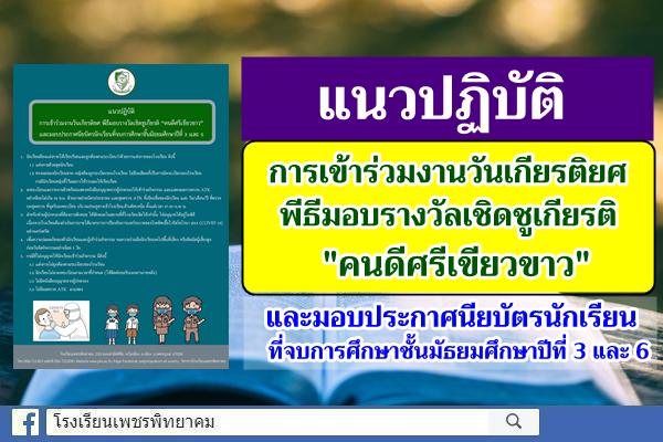 แนวปฏิบัติ การเข้าร่วมงานวันเกียรติยศ พีธีมอบรางวัลเชิดชูเกียรติ "คนดีศรีเขียวขาว" และมอบประกาศนียบัตรนักเรียนที่จบการศึกษาชั้นมัธยมศึกษาปีที่ 3 และ 6