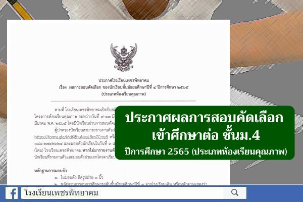 ประกาศโรงเรียนเพชรพิทยาคม เรื่อง ผลการสอบคัดเลือก ของนักเรียนชั้นมัธยมศึกษาปีที่ 4 ปีการศึกษา 2565 (ประเภทห้องเรียนคุณภาพ)