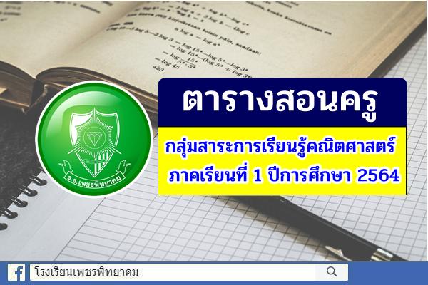 ตารางสอนครู กลุ่มสาระการเรียนรู้คณิตศาสตร์ ภาคเรียนที่ 1 ปีการศึกษา 2564