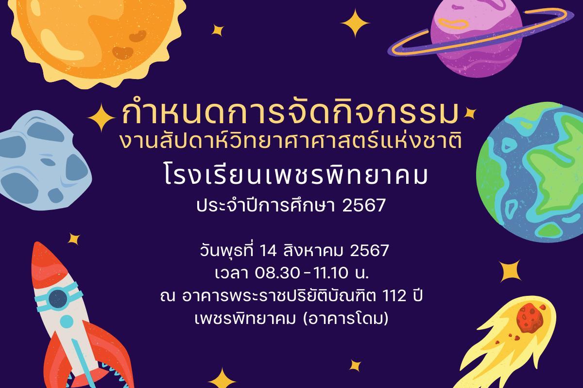 กำหนดการจัดกิจกรรมงานสัปดาห์วิทยาศาศาสตร์แห่งชาติ โรงเรียนเพชรพิทยาคม ประจำปีการศึกษา 2567