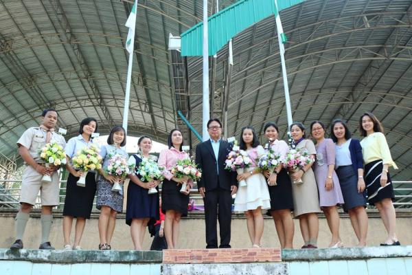 มอบช่อดอกไม้แสดงความยินดีกับคณะครู และนักเรียน