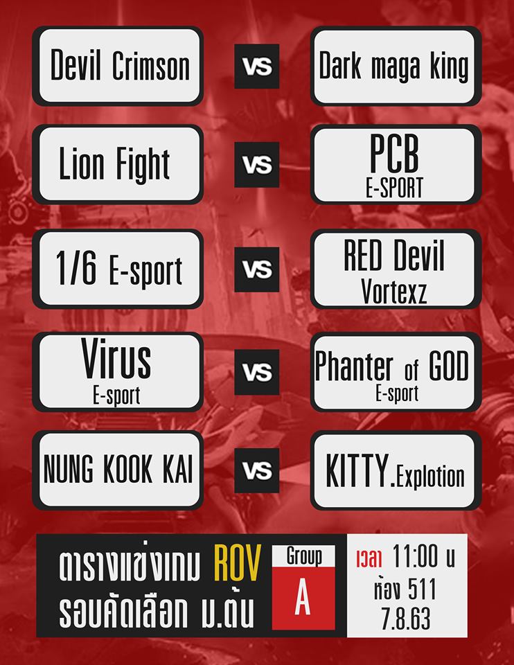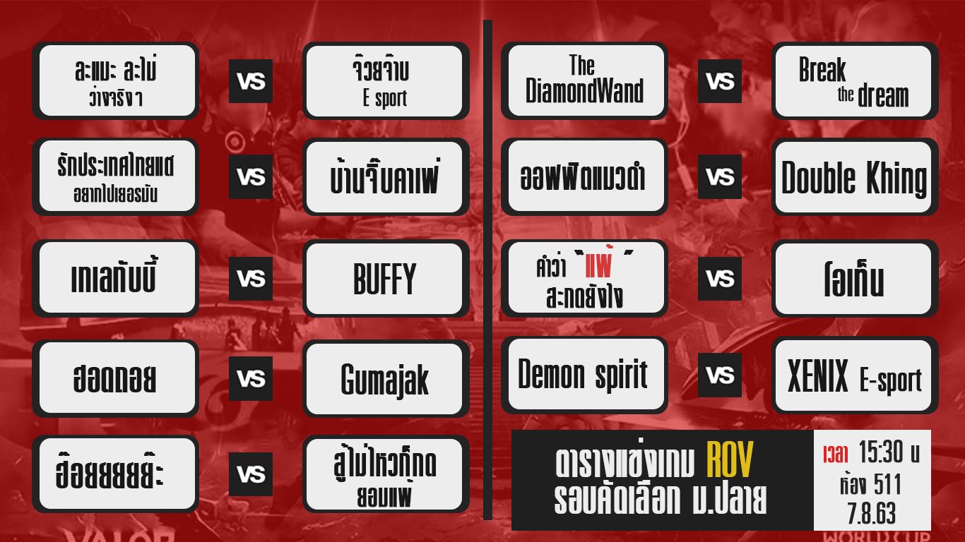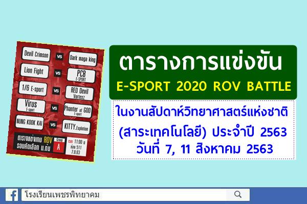 ตารางการแข่งขัน E-SPORT 2020 ROV BATTLE ในงานสัปดาห์วิทยาศาสตร์แห่งชาติ (สาระเทคโนโลยี) ประจำปี 2563