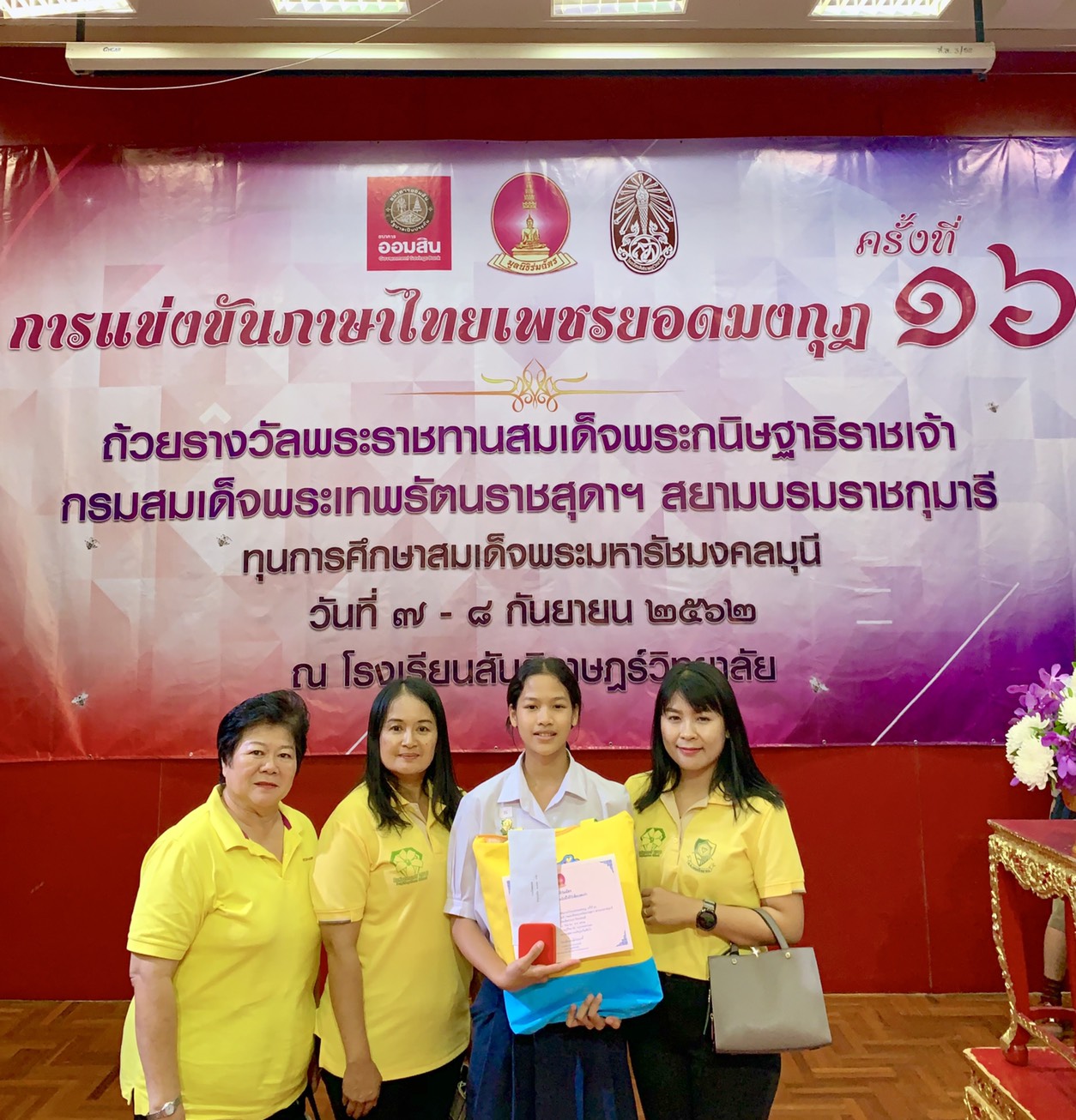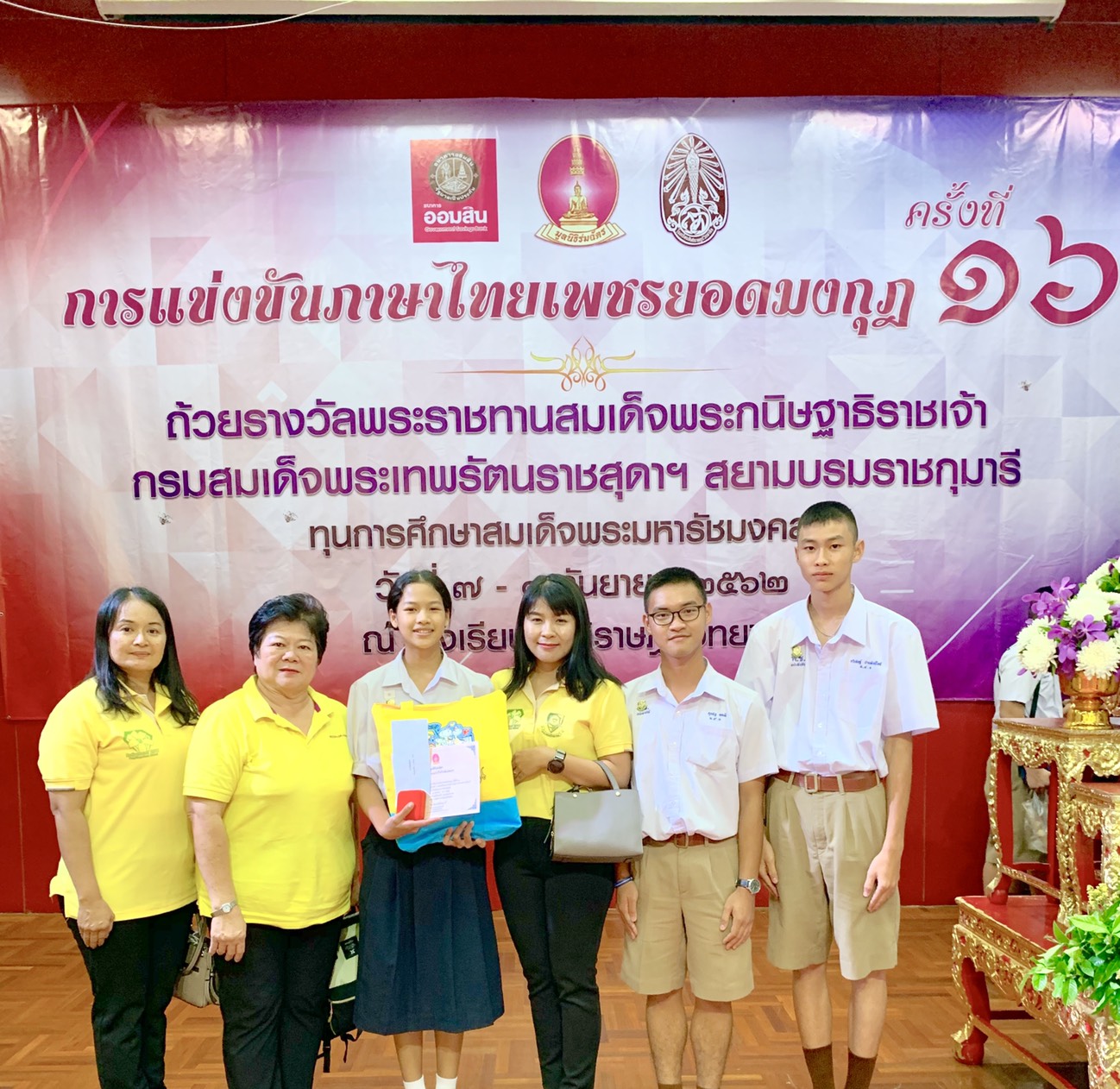 รางวัลชมเชยรอบเจียระไนเพชรระดับประเทศในการแข่งขันภาษาไทยเพชรยอดมงกุฎครั้งที่ ๑๖ ถ้วยรางวัลพระราชทานสมเด็จพระกนิษฐาธิราชเจ้า กรมสมเด็จพระเทพรัตนราชสุดาฯ สยามบรมราชกุมารี