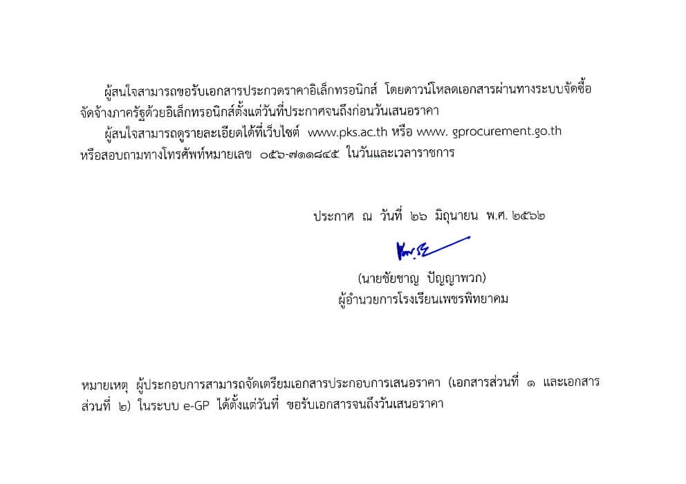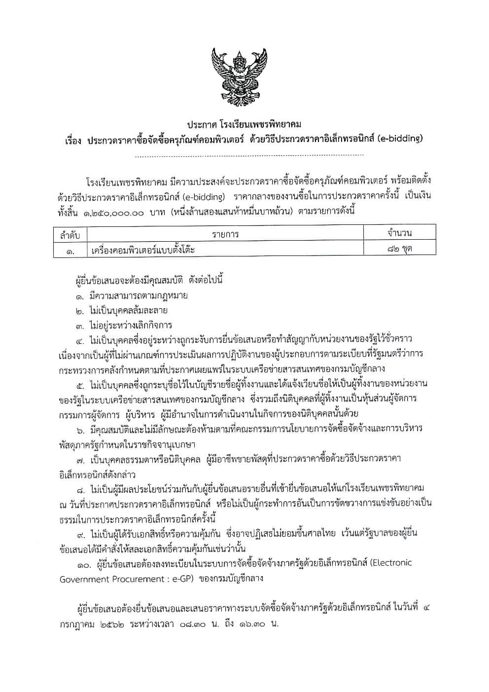 ประกาศโรงเรียนเพชรพิทยาคม เรื่อง ประกวดราคาซื้อจัดซื้อครุภัณฑ์คอมพิวเตอร์ ด้วยวิธีประกวดราคาอิเล็กทรอนิกส์ (e-bidding)
