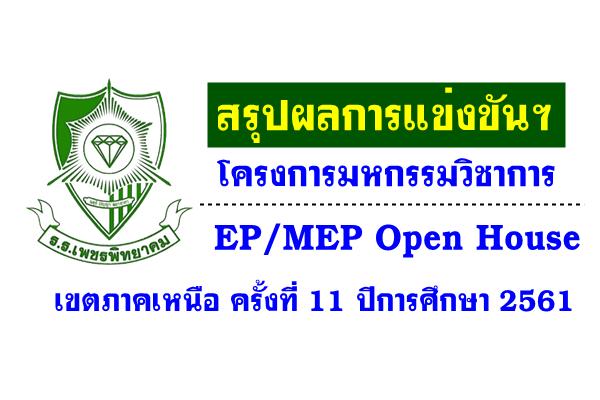 สรุปผลการแข่งขันฯ โครงการมหกรรมวิชาการ EP/MEP Open Houseเขตภาคเหนือ ครั้งที่ 11 ปีการศึกษา 2561