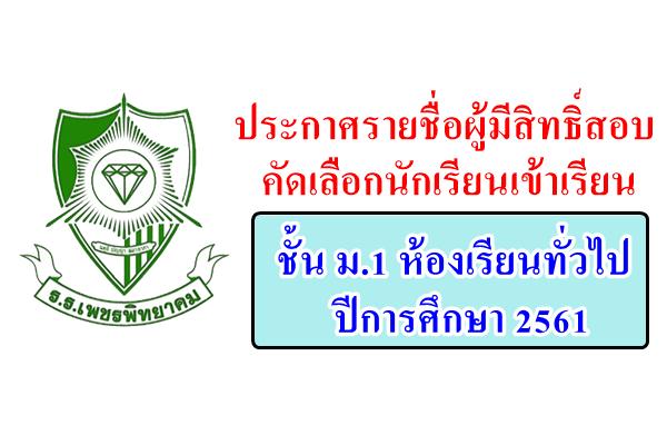 ประกาศรายชื่อผู้มีสิทธิ์สอบคัดเลือกนักเรียนเข้าเรียนชั้นม.1 ห้องเรียนทั่วไป ปี 2561
