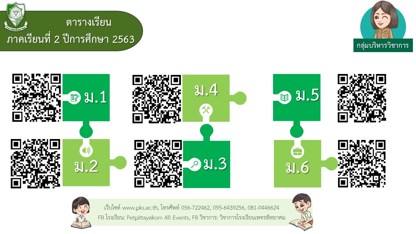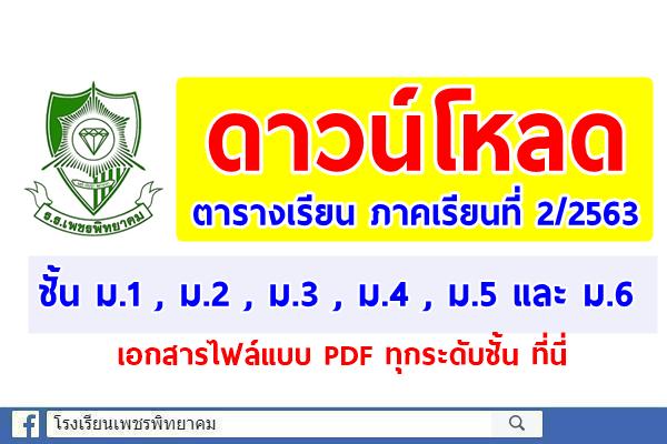 ตารางเรียน ภาคเรียนที่ 2 ปีการศึกษา 2563 โรงเรียนเพชรพิทยาคม