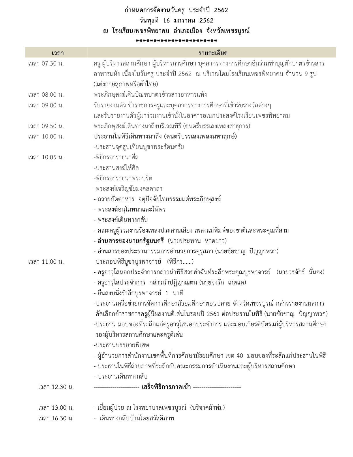 กำหนดการจัดงานวันครู สพม.40 ประจำปี 2562