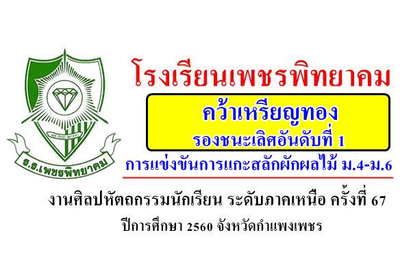 เพชรพิทยาคม คว้าเหรียญทอง รองชนะเลิศอันดับที่ 1 การแข่งขันการแกะสลักผักผลไม้ ม.4-ม.6